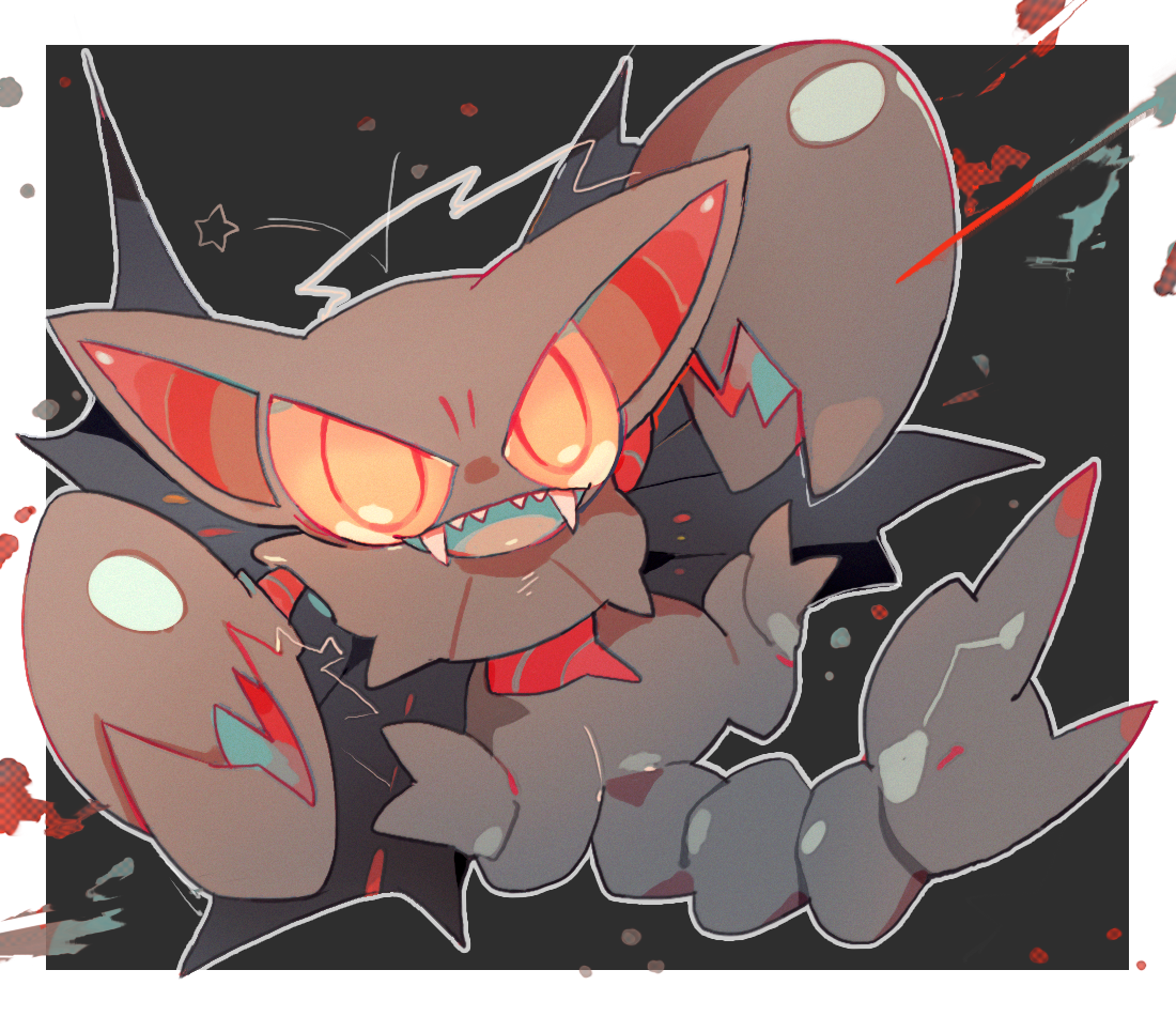 akadako animal_focus bags_under_eyes black_background border colored_sclera fangs full_body gen_4_pokemon gliscor grey_outline looking_at_viewer nintendo no_humans one-hour_drawing_challenge open_mouth outline outside_border pokemon pokemon_(creature) sharp_teeth solo star_(symbol) teeth white_border yellow_eyes yellow_sclera