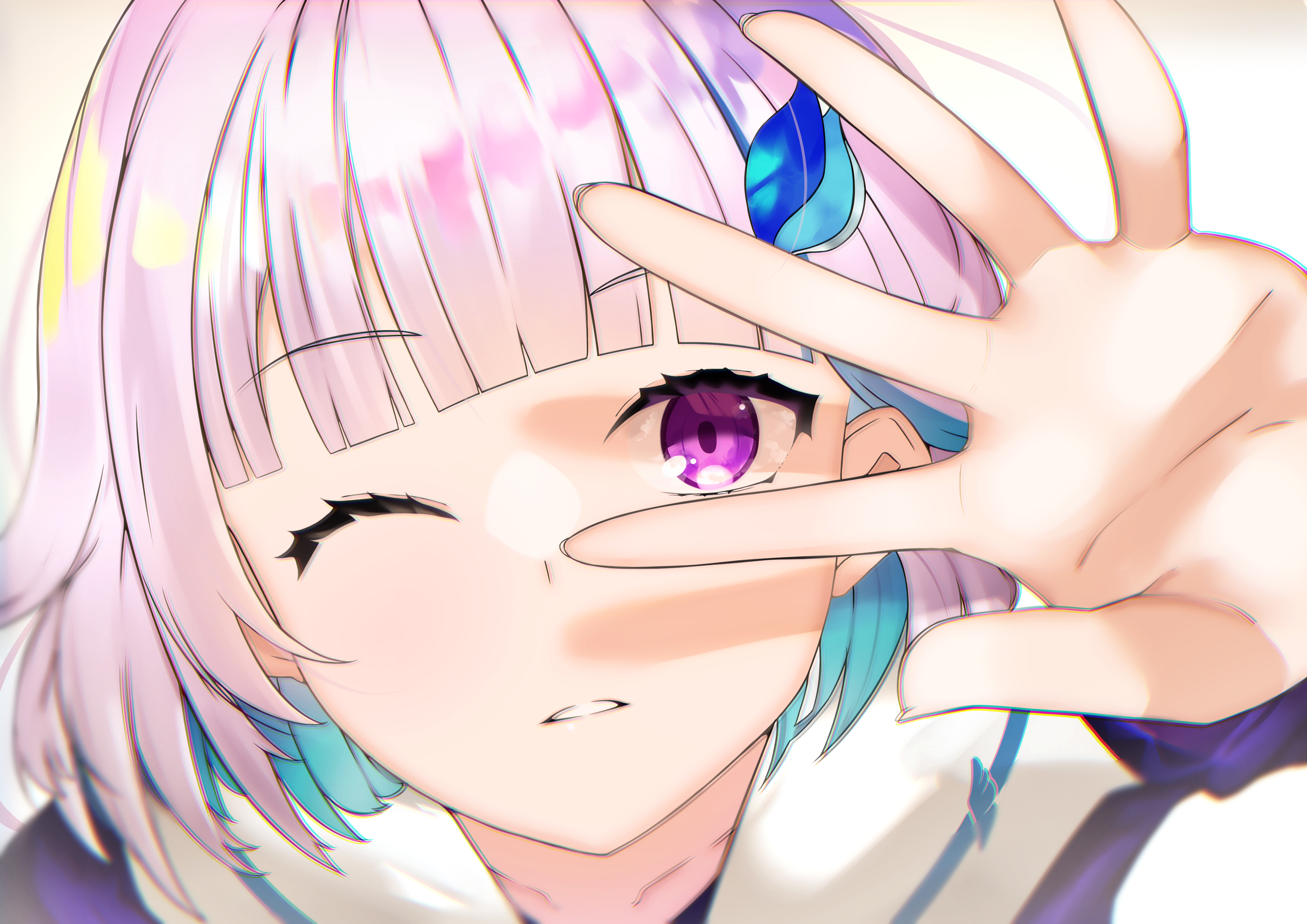 1girl absurdres black_dress bob_cut bureoeve dress highres lize_helesta lize_helesta_(4th_costume) looking_at_viewer multicolored_hair nijisanji one_eye_closed pink_eyes sailor_collar short_hair solo two-tone_hair virtual_youtuber white_background white_sailor_collar