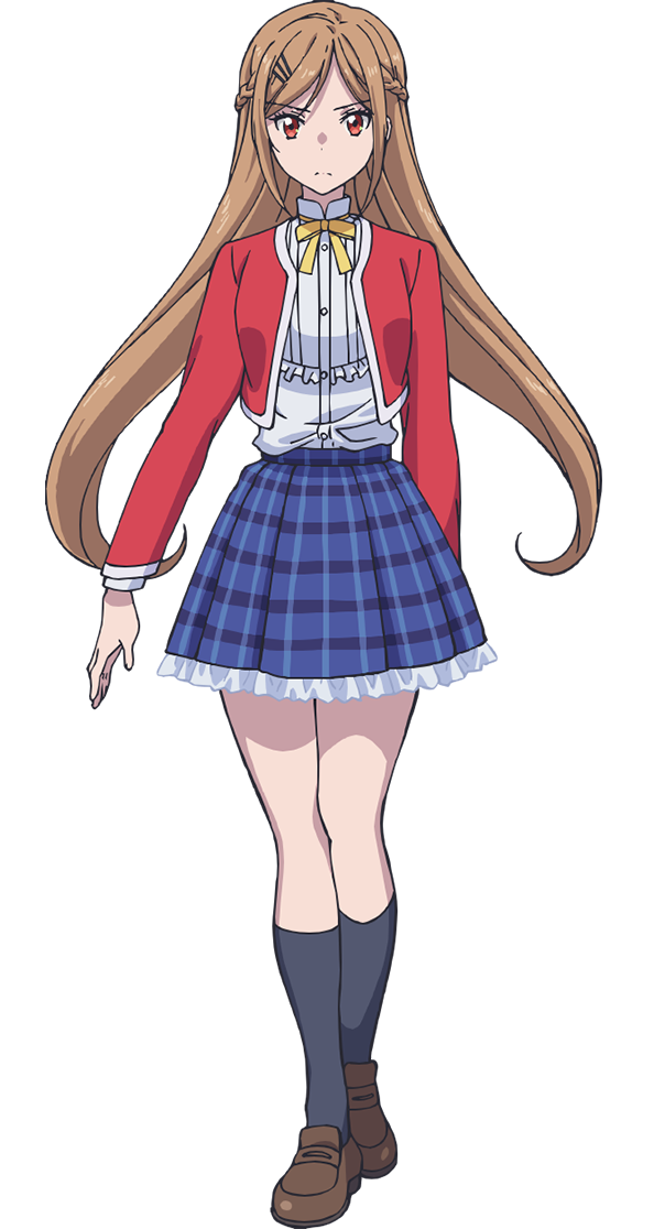 1girl black_socks blue_skirt brown_hair closed_mouth jacket long_hair looking_at_viewer open_clothes open_jacket red_eyes red_jacket ribbon school_uniform serious shinozaki_ayaka_(instant_death) shirt shoes skirt socks sokushi_cheat_ga_saikyou_sugite_isekai_no_yatsura_ga_marude_aite_ni_naranai_n_desu_ga solo transparent_background very_long_hair white_shirt yellow_ribbon