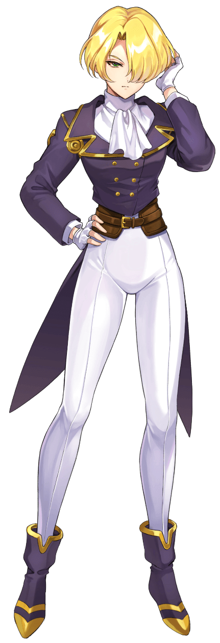 1girl ankle_boots ascot belt belt_buckle blonde_hair blue_eyes boots brown_belt buckle buttons coattails collar collared_jacket double-breasted double_vertical_stripe final_gear fingerless_gloves gloves gold_buckle gold_buttons hair_over_one_eye hand_in_own_hair hand_on_own_hip highres jacket knees light_frown long_sleeves mandarin_collar maria_tachibana mature_female multicolored_boots official_art pants parted_lips purple_boots purple_collar purple_jacket purple_sleeves purple_uniform sakura_taisen sega short_hair solo standing striped_clothes striped_pants tailcoat tall_female tight_clothes tight_pants transparent_background two-tone_boots vertical-striped_clothes vertical-striped_pants very_short_hair white_ascot white_collar white_gloves white_pants white_sleeves yellow_boots