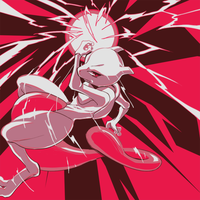 energy_ball full_body gen_1_pokemon horns karasa_(tsukasa_yu) legendary_pokemon looking_at_viewer mewtwo nintendo no_humans pokemon pokemon_(creature) solo tail