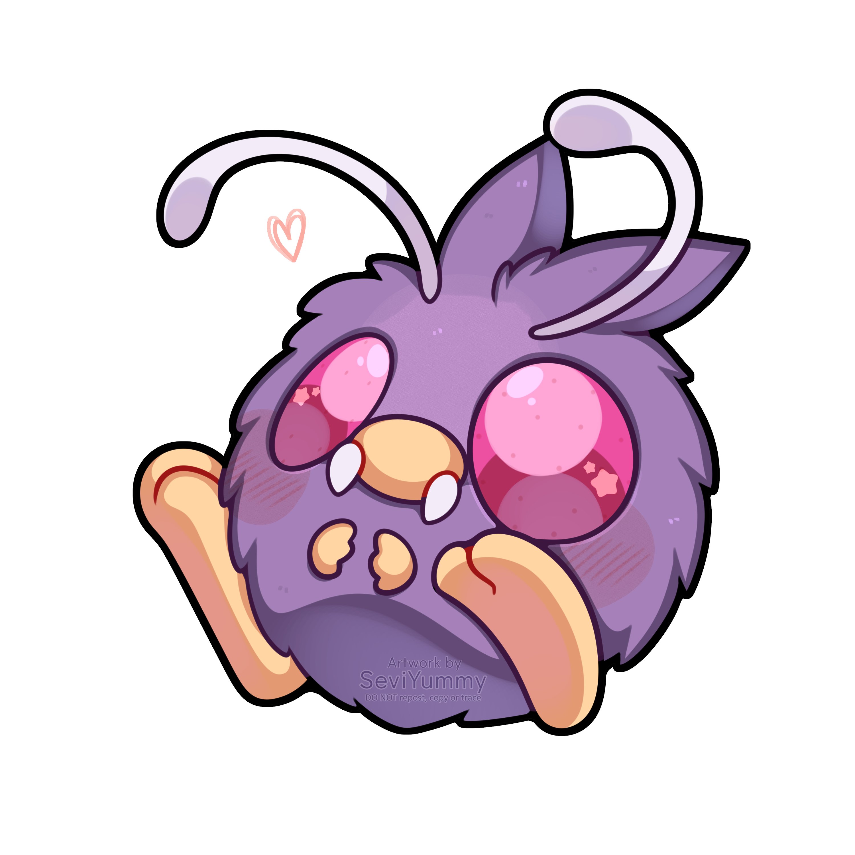 absurdres antennae blush bug fang gen_1_pokemon heart highres nintendo no_humans pink_eyes pokemon pokemon_(creature) sevi_(seviyummy) signature simple_background solo venonat white_background