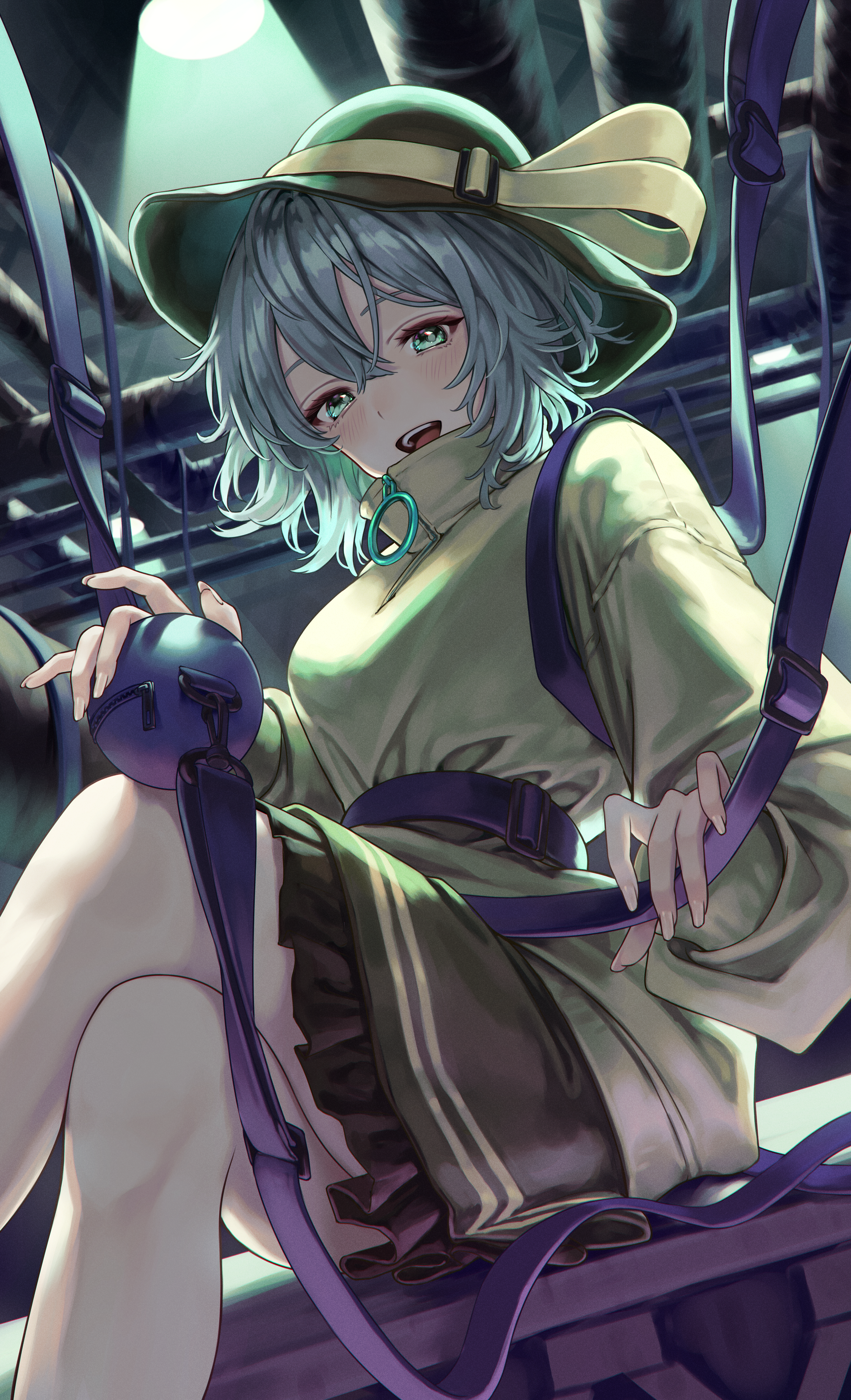 1girl absurdres green_eyes green_hair hat hat_ribbon highres koishi_day komeiji_koishi long_sleeves looking_at_viewer open_mouth ribbon short_hair solo torinari_(dtvisu) touhou