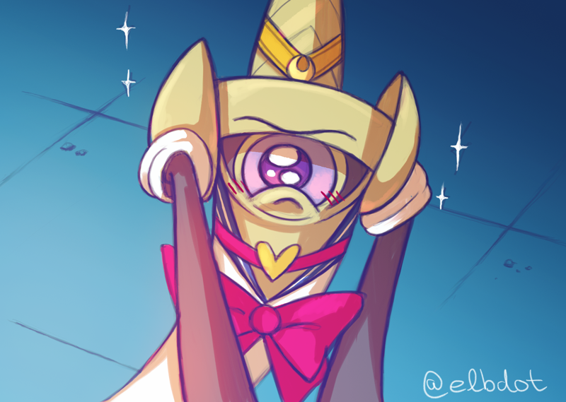 aegislash artist_name bishoujo_senshi_sailor_moon bishoujo_senshi_sailor_moon_s blush bow bowtie clothed_pokemon commentary eleanor_bick english_commentary gen_6_pokemon meme nintendo no_humans one-eyed pink_bow pink_bowtie pleading_eyes pokemon pokemon_(creature) purple_eyes sailor_moon_redraw_challenge_(meme) sparkle twitter_username