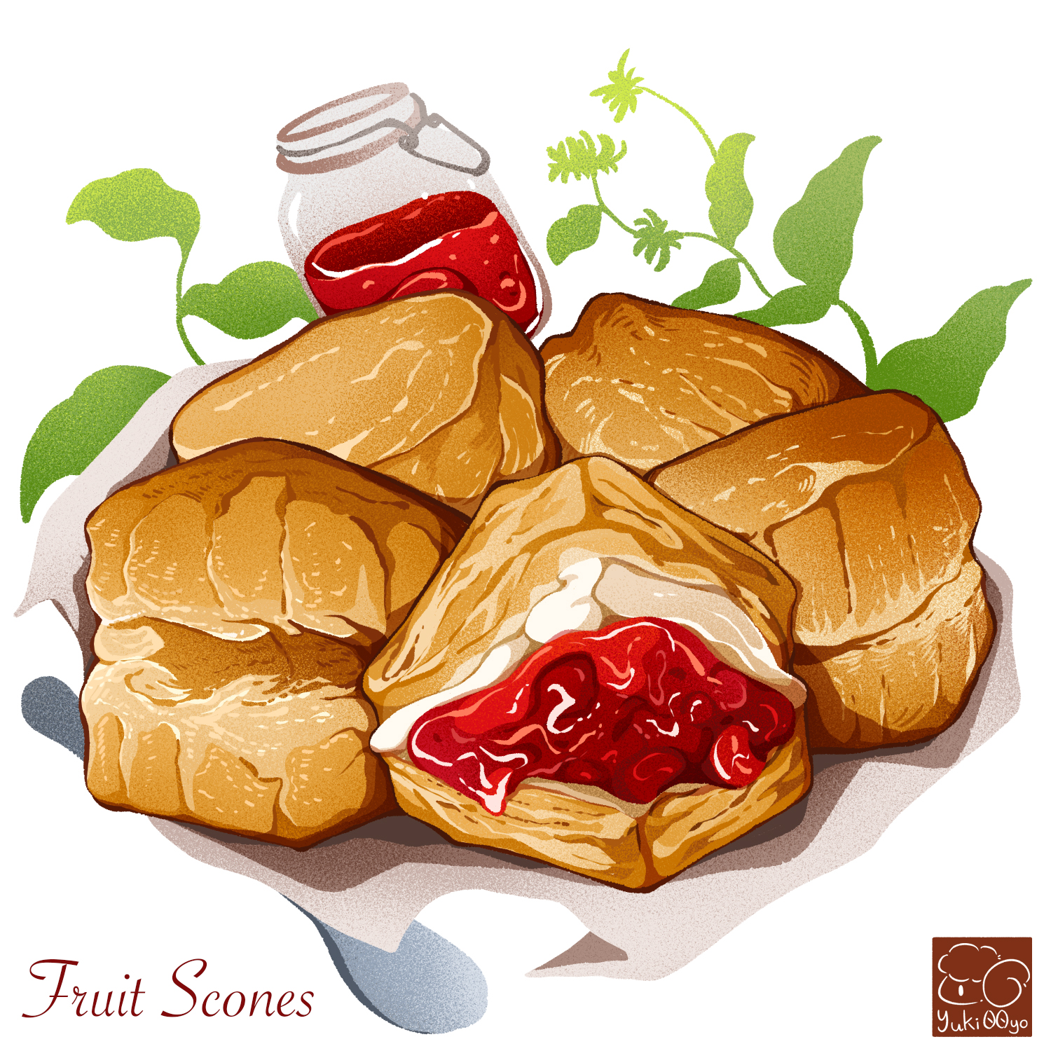 artist_logo artist_name food food_focus food_name fruit highres jam jar logo no_humans original pastry scone strawberry yuki00yo