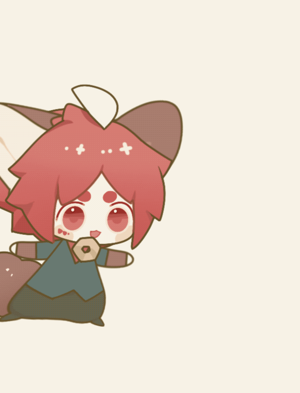 1boy ahoge animal_ears animated animated_gif black_pants black_shoes blue_shirt blue_sleeves blush_stickers chibi chinese_commentary coin commentary_request ear_wiggle fox_ears fox_tail full_body grey_sleeves holed_coin layered_sleeves long_sleeves looking_at_viewer male_focus open_mouth original pants puffy_pants red_eyes red_hair red_scarf scarf shirt shoes short_hair short_over_long_sleeves short_sleeves simple_background smile solo tail walking yellow_background zzennn