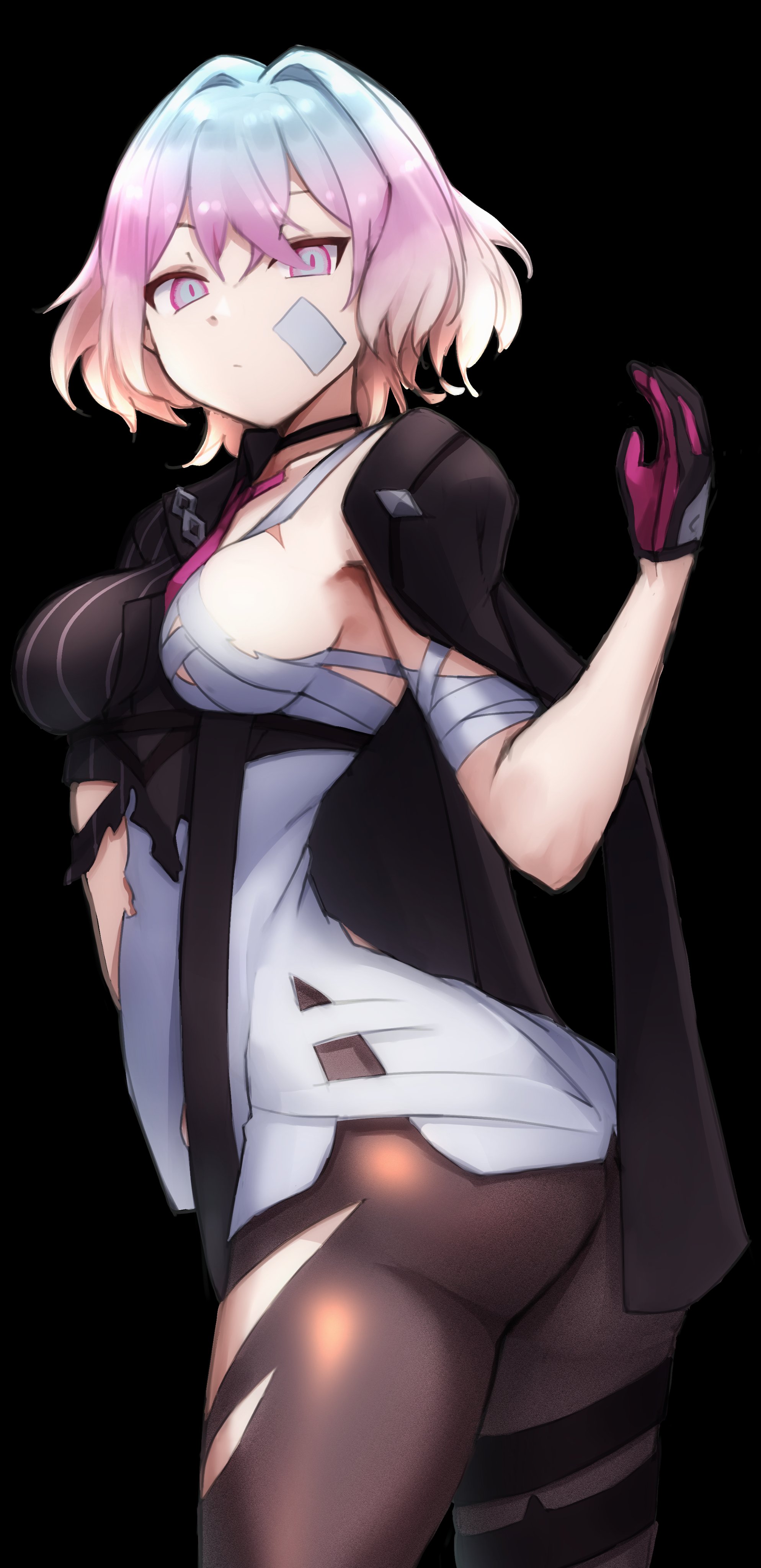 absurdres cape cream_bread gloves highres honkai_(series) honkai_impact_3rd lantern_(honkai_impact) multicolored_eyes multicolored_hair pantyhose red_gloves shirt thigh_strap torn_clothes torn_pantyhose white_shirt