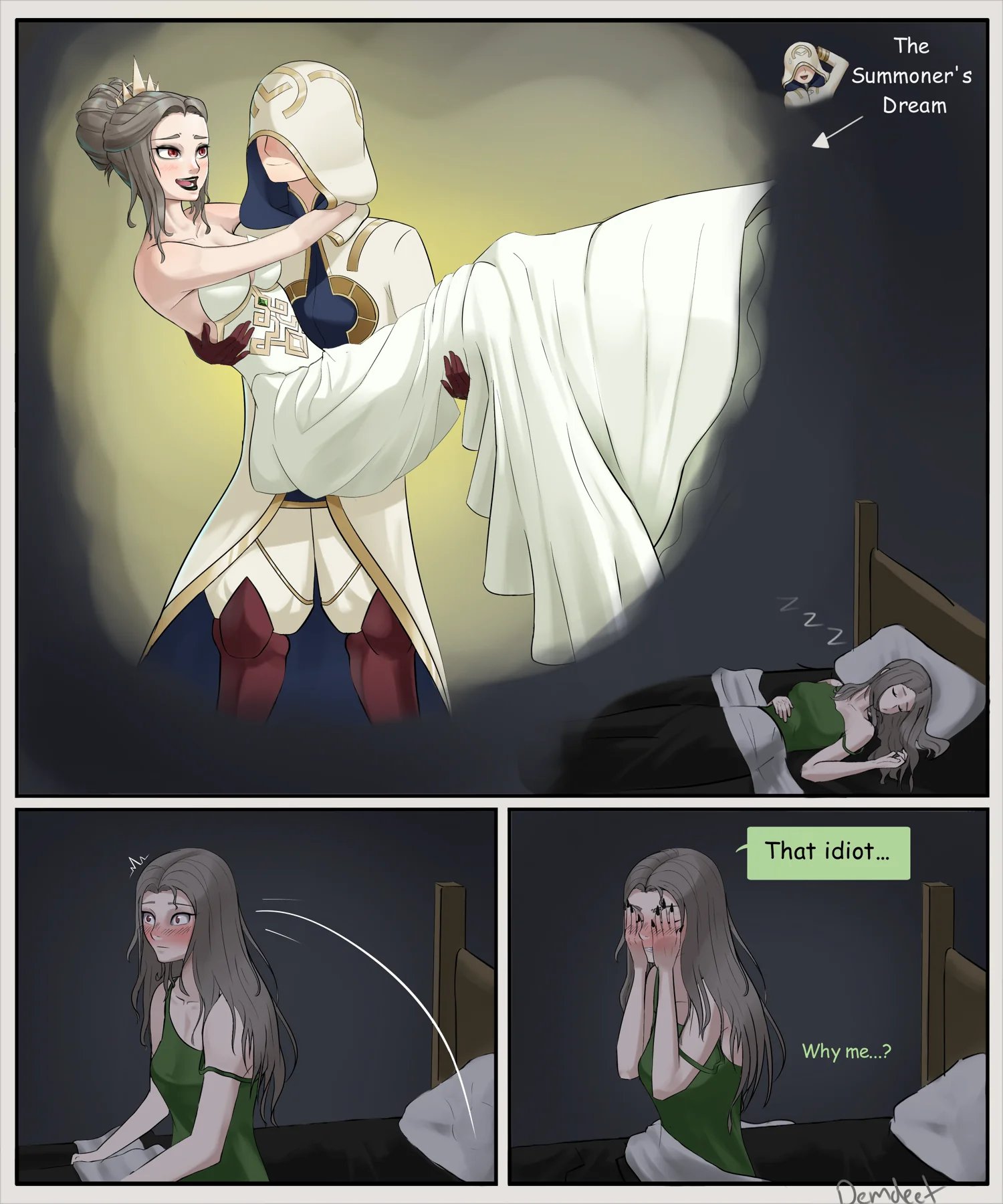 1boy 1girl blush comic dreaming english_text fire_emblem fire_emblem_heroes grey_hair highres kiran_(fire_emblem) male_kiran_(fire_emblem) letizia_(fire_emblem) monykuma nintendo pink_eyes
