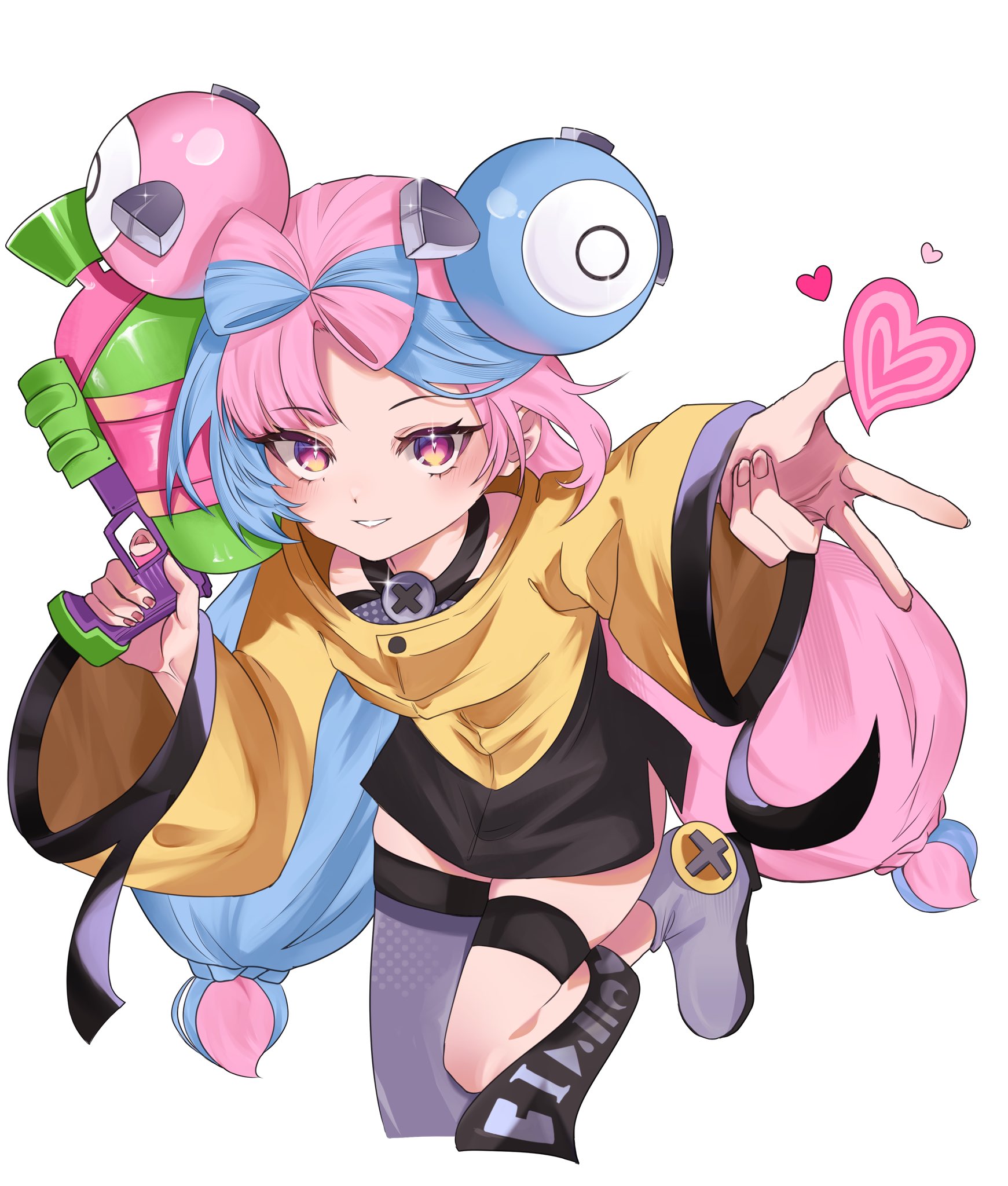 1girl anonymous84268 boots grey_boots highres iono_(pokemon) long_hair low-tied_long_hair nintendo pokemon pokemon_scarlet_and_violet simple_background solo splatoon_(series) splatoon_1 white_background