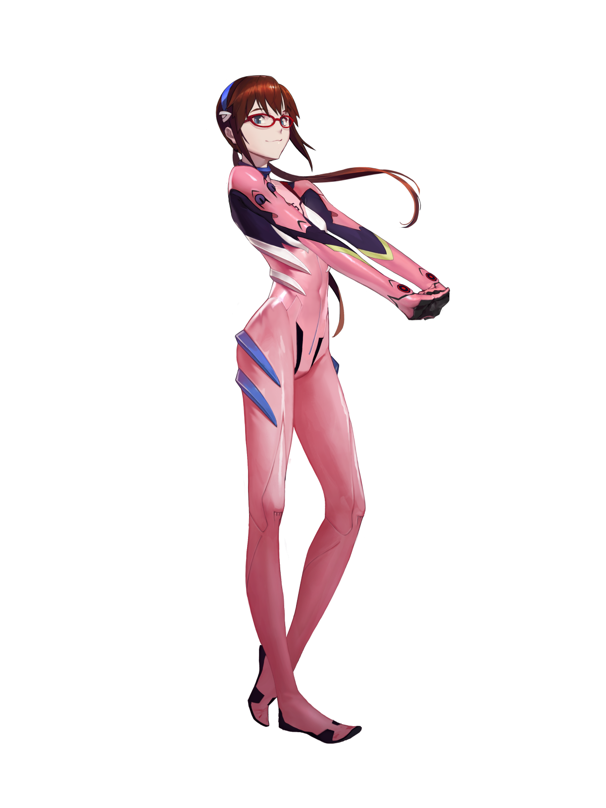 1girl adjusting_eyewear artist_request blue_collar blue_eyes blue_hairband brown_hair collar covered_navel evangelion:_2.0_you_can_(not)_advance final_gear full_body glasses hairband highres legs long_hair long_legs looking_at_viewer makinami_mari_illustrious mecha_pilot_suit narrow_waist neon_genesis_evangelion number_print numbered official_art outstretched_arms pilot_suit pink_background plugsuit_(evangelion) rebuild_of_evangelion red-framed_eyewear science_fiction simple_background skin_tight skinny smile solo stretching tachi-e third-party_source transparent_background two-tone_sleeves white_background