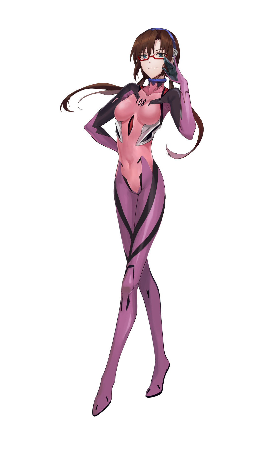 1girl adjusting_eyewear artist_request blue_collar blue_eyes blue_hairband brown_hair collar covered_navel evangelion:_2.0_you_can_(not)_advance final_gear full_body glasses hairband hand_on_eyewear hand_on_own_hip highres legs long_hair long_legs looking_at_viewer makinami_mari_illustrious mecha_pilot_suit narrow_waist neon_genesis_evangelion number_print numbered official_art pilot_suit pink_background plugsuit_(evangelion) rebuild_of_evangelion red-framed_eyewear science_fiction simple_background skin_tight skinny smile smug solo tachi-e third-party_source transparent_background two-tone_sleeves