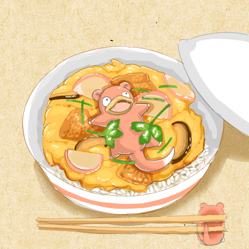 black_eyes bowl chopsticks dashimaki_gorilla_(dasigori) food gen_1_pokemon nintendo no_humans open_mouth pokemon pokemon_(creature) rice slowpoke solo