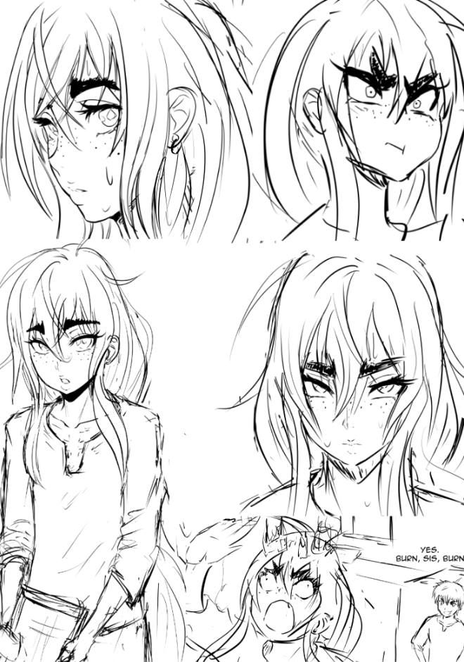 1boy 1girl :t doodle freckles lummypixith monochrome original sketch solo
