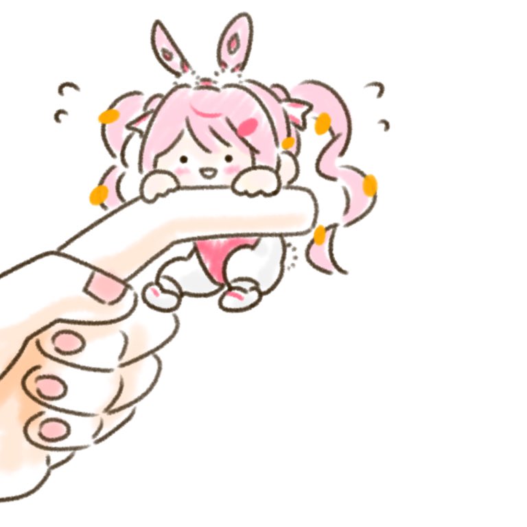 1girl 1other :d alice_(nikke) alice_(wonderland_bunny)_(nikke) animal_ears carrot_hair_ornament chibi fake_animal_ears fake_tail food-themed_hair_ornament goddess_of_victory:_nikke hair_between_eyes hair_intakes hair_ornament holding leotard long_hair mini_person minigirl nightwalk4869 open_mouth pantyhose pink_hair pink_leotard playboy_bunny rabbit_ears rabbit_tail sidelocks smile tail twintails white_pantyhose