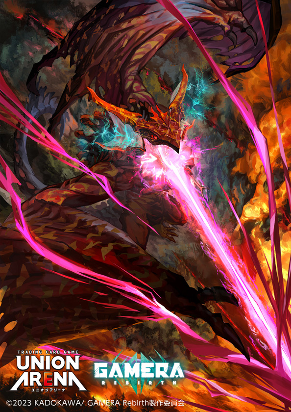 absurdly_long_tail breath_weapon claws crest dust electricity emaciated energy energy_beam engi_(animation_studio) english_text epic explosion extra_eyes feet fire gamera_(series) gamera_-rebirth- giant giant_monster glowing glowing_eyes glowing_horns gyaos horns japanese_text kadokawa kaiju kurodra laser logo maser maser_beam monster mouth_beam night no_humans official_art open_mouth red_eyes s-gyaos sharp_teeth slit_pupils smoke tail talons teeth tongue torn_wings ultrasonic_scalpel union_arena very_long_tail wings