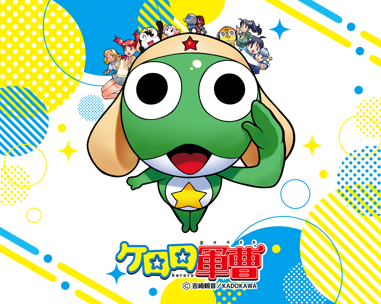 angol_mois black_eyes black_hair blonde_hair blue_hair copyright_name dororo_(keroro_gunsou) frog giroro glasses hat headphones hinata_aki hinata_fuyuki hinata_natsumi hood hoodie jacket keroro keroro_gunsou kururu_(keroro_gunsou) long_hair looking_at_viewer mask mouth_mask ninja_mask nishizawa_momoka official_art official_wallpaper red_hair school_uniform short_hair simple_background star_(symbol) sumomo_(keroro_gunsou) tamama weapon yoshizaki_mine