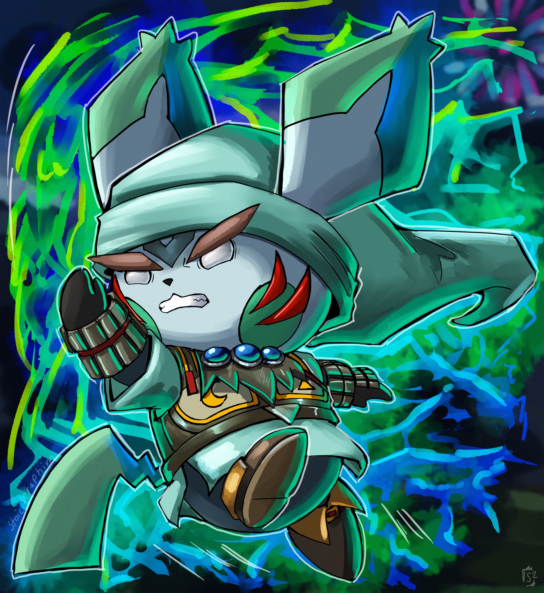alternate_color alternate_costume angry armor aura belt blue_gem boots brown_footwear chest_jewel clenched_teeth commentary corruption crescent crossover dark_persona electricity english_commentary facial_tattoo fierce_deity frown gem gen_2_pokemon gloves hal_laboratory hat highres looking_to_the_side nintendo no_humans no_pupils pichu pointy_ears pokemon pokemon_(creature) pokemon_gold/silver/crystal possessed possession short_sleeves stoic_seraphim super_smash_bros. tail tattoo teeth the_legend_of_zelda the_legend_of_zelda:_majora's_mask thick_eyebrows triangle tunic white_eyes wrist_guards