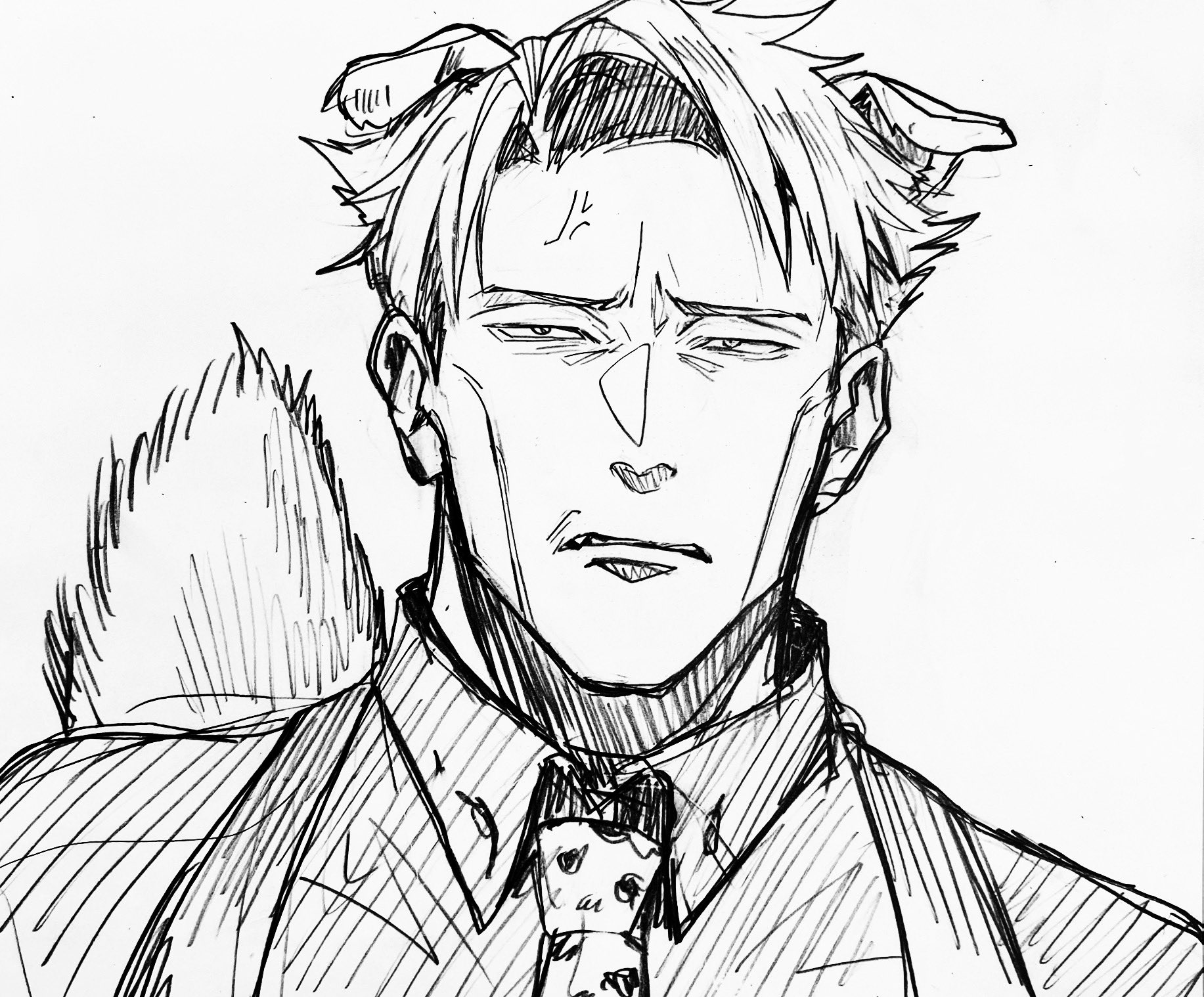 1boy anger_vein animal_ears animal_print annoyed dog_ears highres jujutsu_kaisen leopard_print looking_at_viewer male_focus nanami_kento necktie nekonii portrait solo suspenders tail