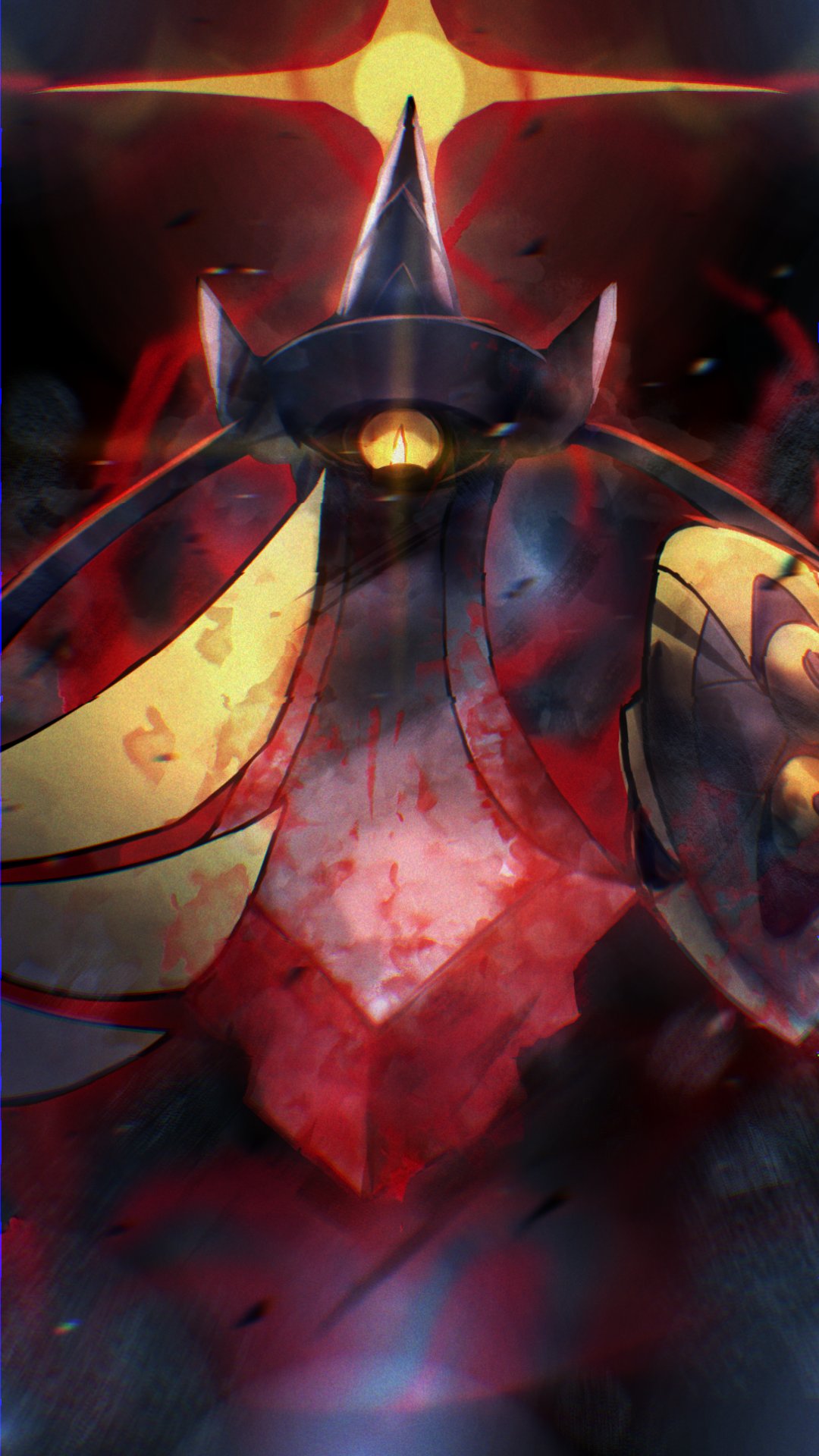 aegislash alternate_color blood bright_pupils gen_6_pokemon highres igaitasugi nintendo no_humans one-eyed pokemon pokemon_(creature) shiny_pokemon slit_pupils sword weapon white_pupils yellow_eyes