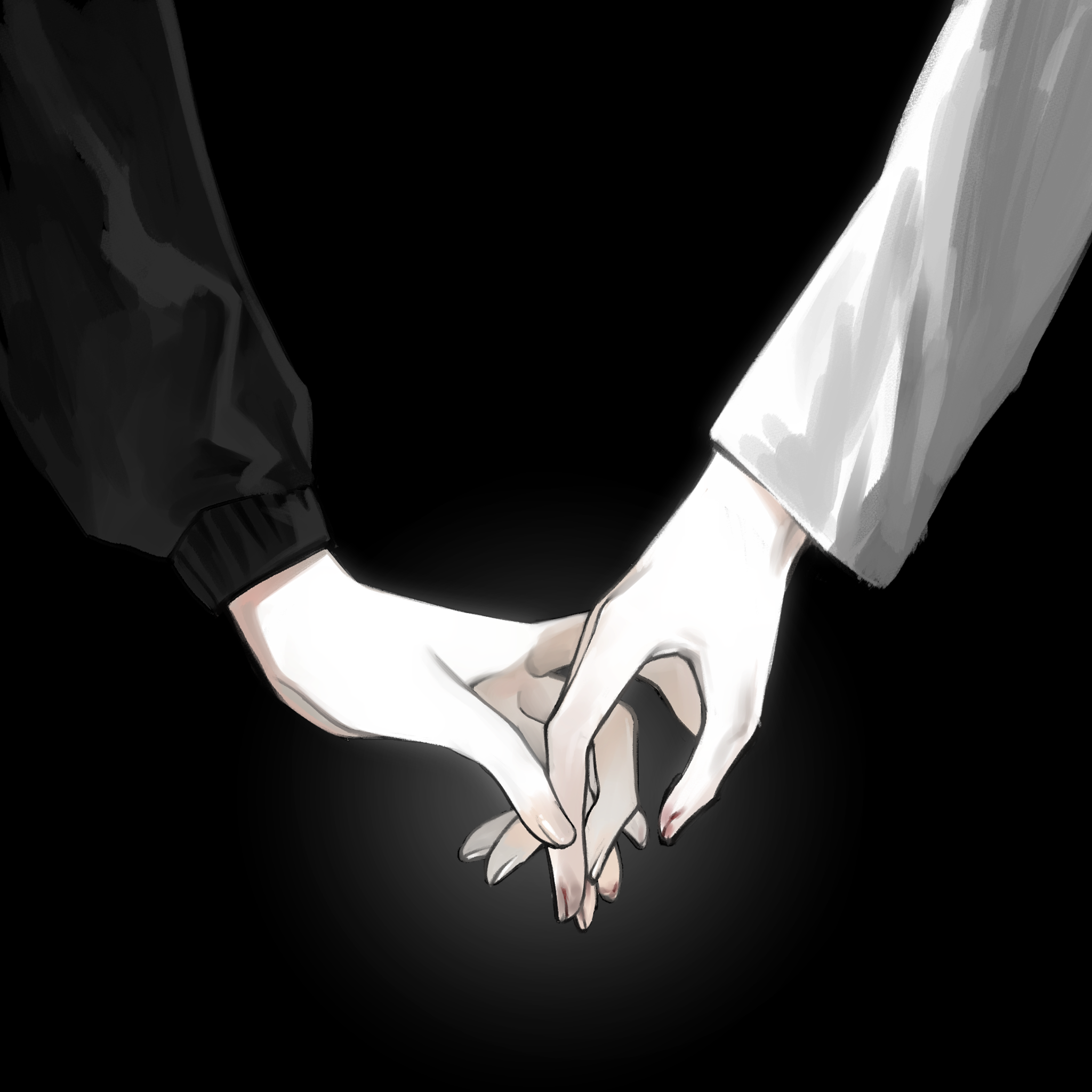 black_background black_shirt chinese_commentary close-up commentary_request highres holding_hands kyoko_(akakikyoko) long_sleeves original shirt simple_background tagme white_shirt