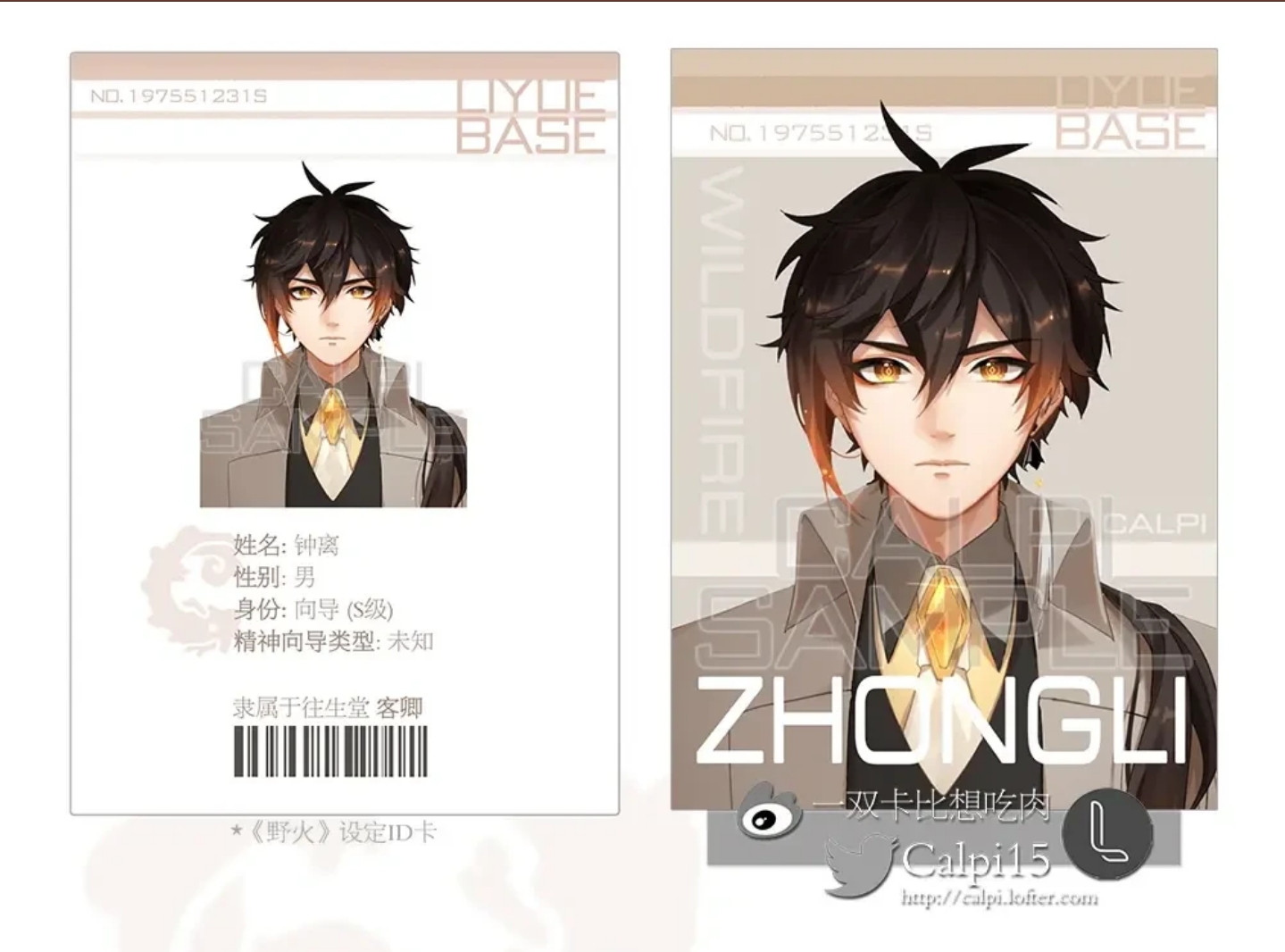1boy barcode calpi15 chinese_text genshin_impact id_card lofter lofter_logo lofter_username looking_at_viewer solo solo_focus zhongli_(genshin_impact)