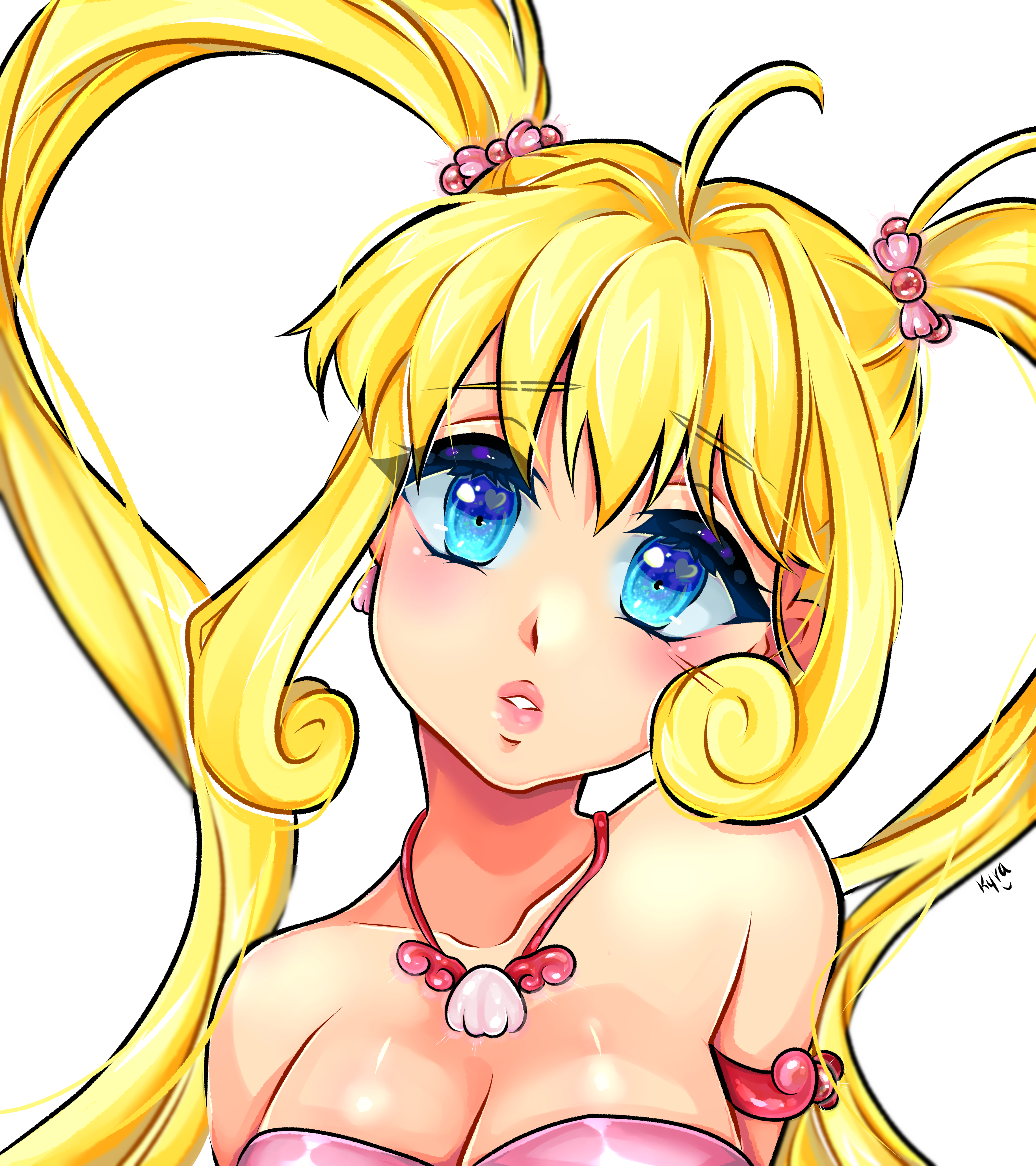 1girl absurdres bikini blonde_hair blue_eyes blush earrings hair_ornament highres jewelry kyranyan long_hair mermaid mermaid_melody_pichi_pichi_pitch monster_girl nanami_lucia nanami_lucia_(mermaid) necklace open_mouth shell shell_bikini shell_earrings shell_necklace solo