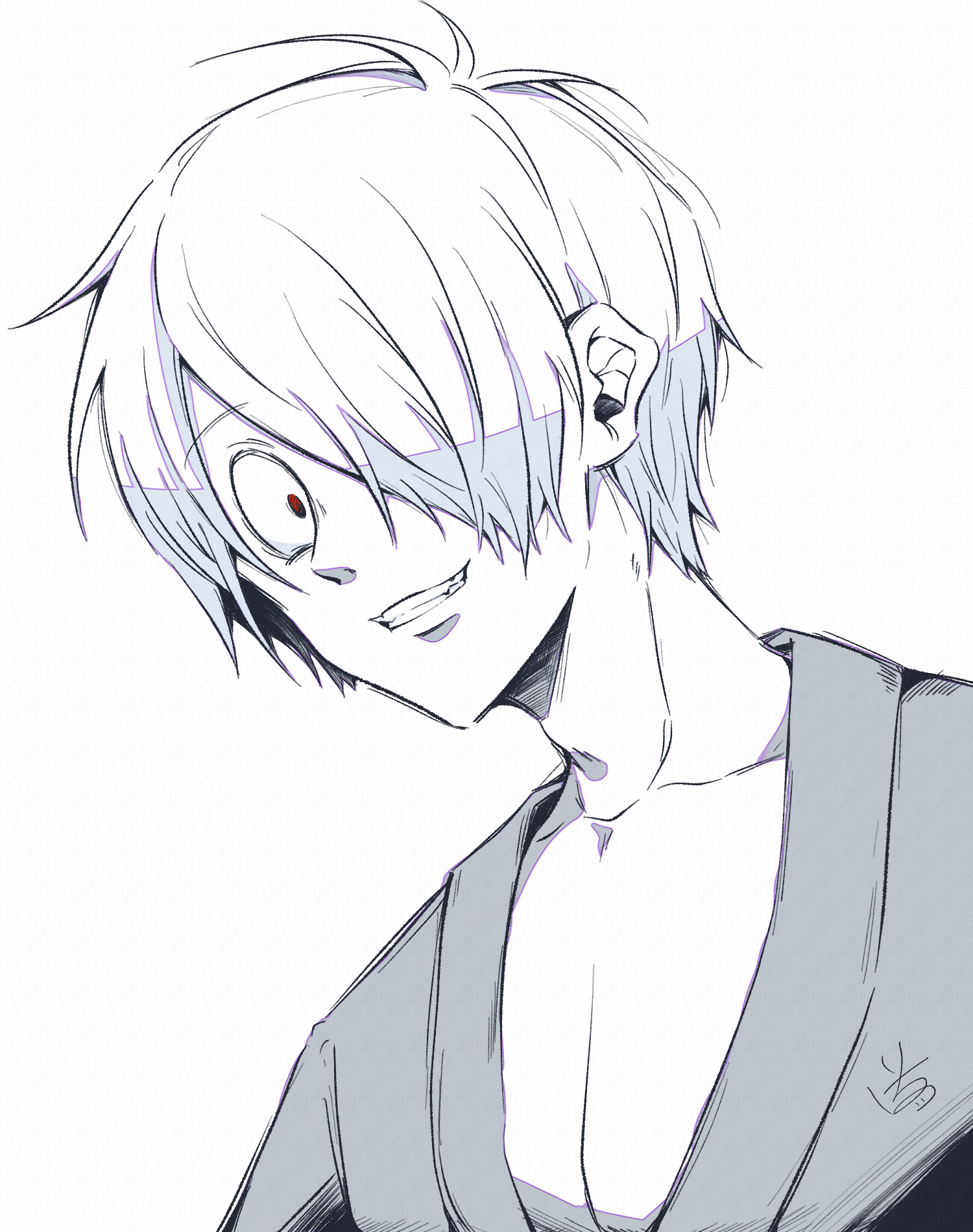 1boy gegege_no_kitarou hair_over_one_eye highres ichihatsu japanese_clothes kimono kitarou_tanjou:_gegege_no_nazo looking_at_viewer male_focus medama_oyaji_(human) monochrome red_eyes short_hair simple_background solo upper_body white_background