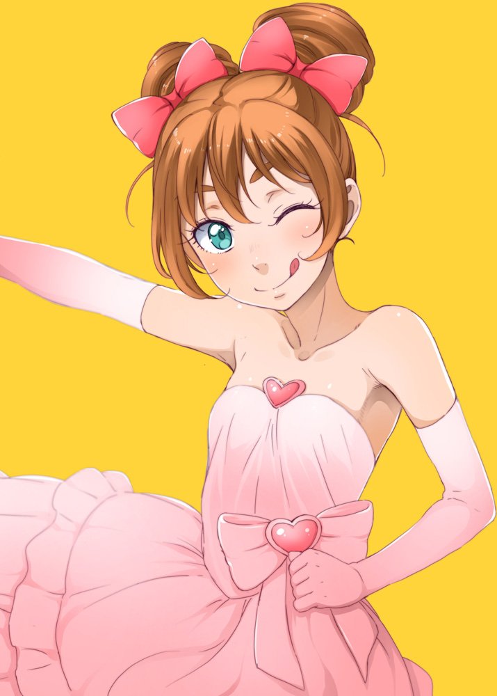 &{ID:10198922 CreatedAt:Fri Jun 14 14:45:07 -0500 2024 Score:5 Width:715 Height:1000 MD5:7ca29bdb66e83c1da0e020664f35cfc7 Directory:7c/a2 Image:7ca29bdb66e83c1da0e020664f35cfc7.jpg Rating:general Source:https://twitter.com/punyataro/status/1079020331208077312 Change:1718394307 Owner:danbooru CreatorID:6498 ParentID:0 Sample:0 PreviewHeight:350 PreviewWidth:250 Tags:1girl ;q blue_eyes bow brown_hair collarbone dress elbow_gloves flat_chest gloves hair_bow houjou_hibiki looking_at_viewer one_eye_closed outstretched_arm pink_dress pink_gloves precure red_bow sakura_kotetsu simple_background solo strapless strapless_dress suite_precure tongue tongue_out twintails wedding_dress yellow_background Title: HasNotes:false HasComments:false FileURL:https://img2.gelbooru.com/images/7c/a2/7ca29bdb66e83c1da0e020664f35cfc7.jpg PreviewURL:https://gelbooru.com/thumbnails/7c/a2/thumbnail_7ca29bdb66e83c1da0e020664f35cfc7.jpg SampleURL: SampleHeight:0 SampleWidth:0 Status:active PostLocked:0 HasChildren:false IsVideo:false DisplayDate:14.06.2024 14:45}