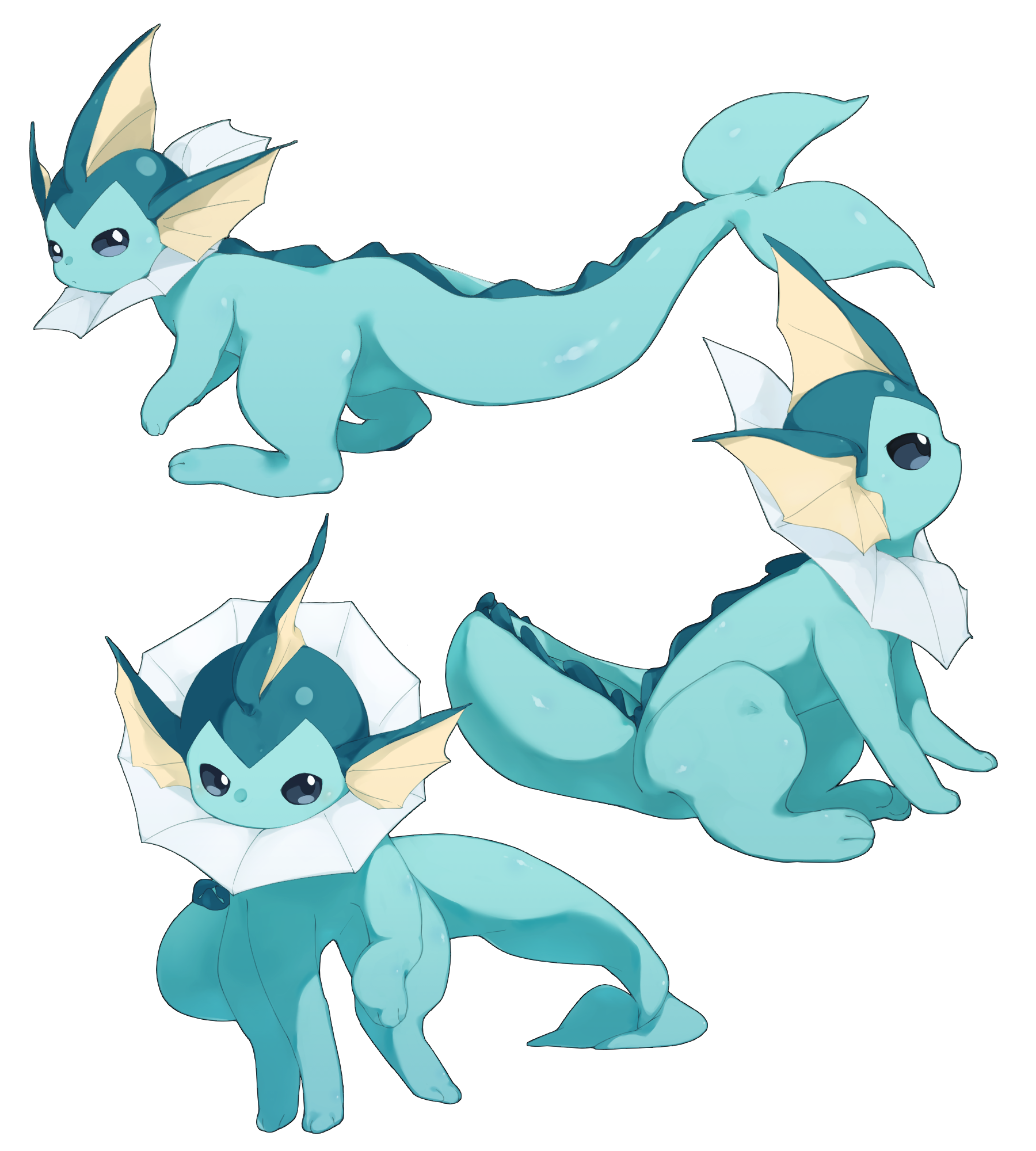 animal animal_focus blue_eyes blue_skin colored_skin fins gen_1_pokemon highres nintendo no_humans pokemon pokemon_(creature) simple_background sitting solo umixign vaporeon white_background