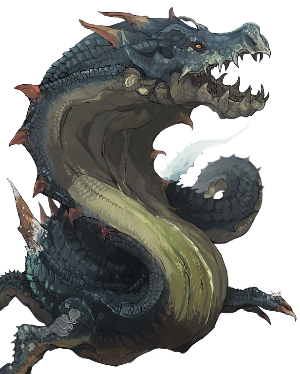 animal_focus claws lagiacrus linne_(hld_doreko) looking_at_viewer monster monster_focus monster_hunter_(series) no_humans open_mouth scales sharp_teeth simple_background solo tail teeth white_background yellow_eyes