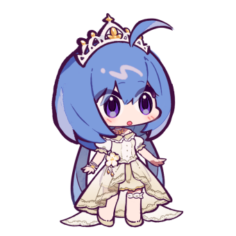 1girl :o ahoge bare_legs blue_hair blush breasts chibi dress eta griseo griseo_(starry_impression) hair_between_eyes honkai_(series) honkai_impact_3rd long_hair looking_at_viewer lowres official_art purple_eyes second-party_source solo very_long_hair white_background white_dress white_footwear white_tiara