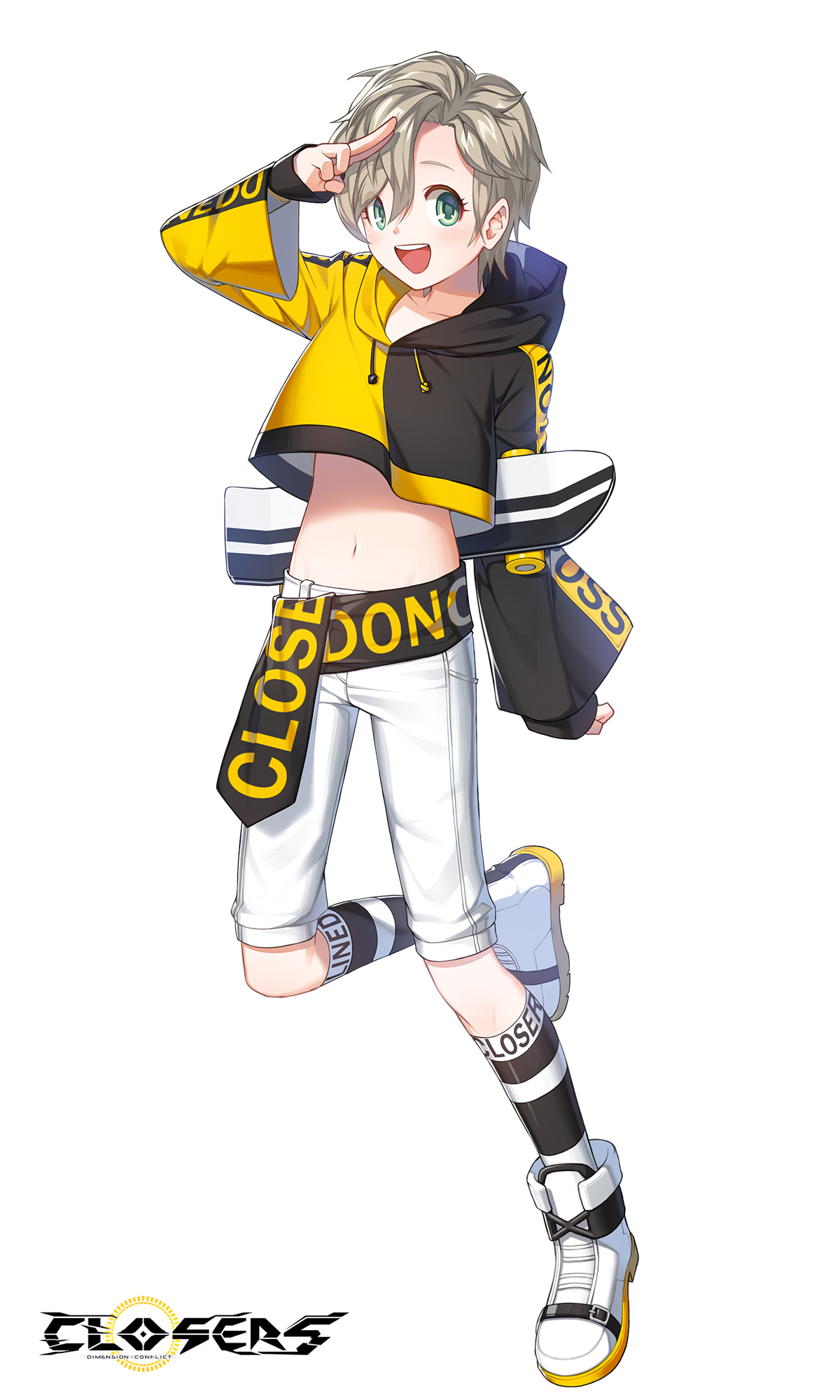 1boy closers green_eyes highres kneehighs light_brown_hair male_focus mistilteinn_(closers) non-web_source shoes socks