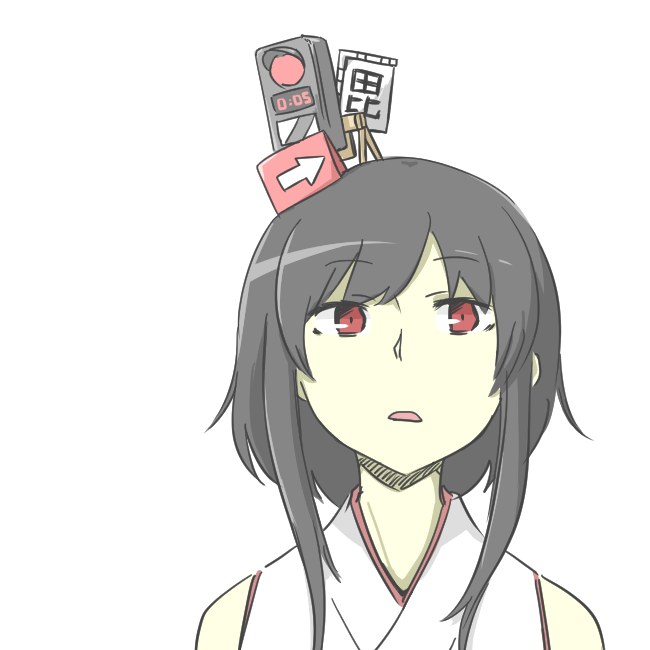 1girl akara_kai black_hair kantai_collection looking_at_viewer medium_hair open_mouth red_eyes simple_background sleeveless solo white_background yamashiro_(kancolle)