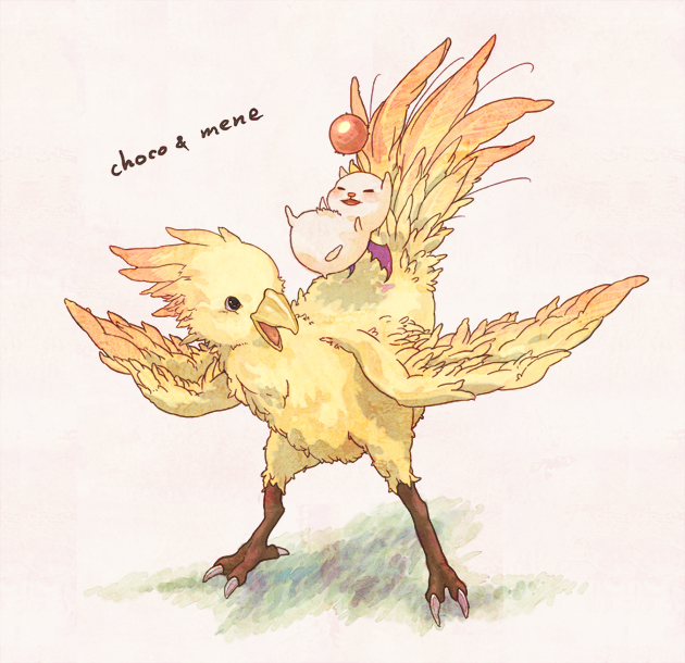 00s animal_focus bird character_name chocobo creature final_fantasy final_fantasy_ix moogle no_humans sheep_sleep white_background