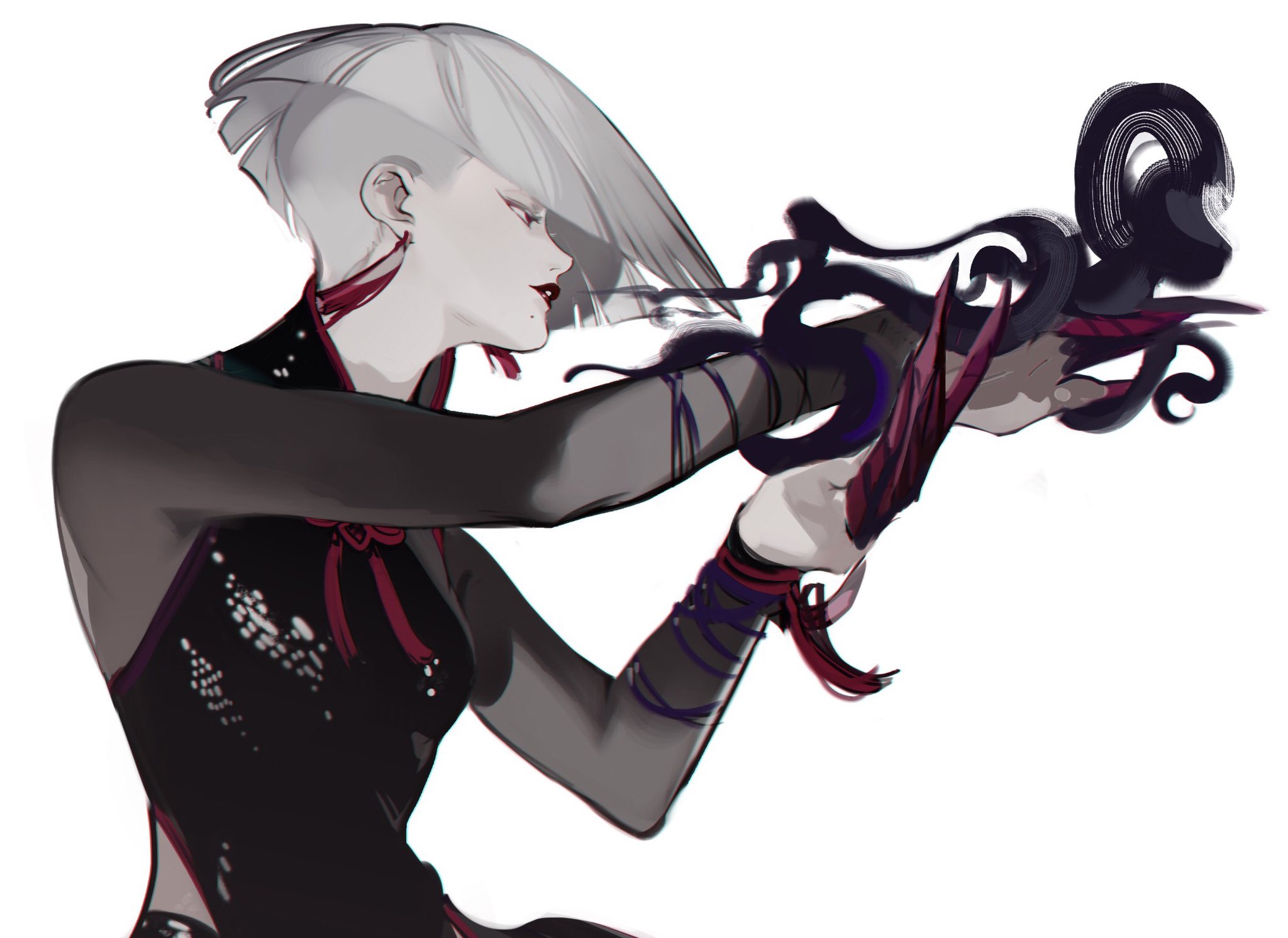 1girl a.k.i._(street_fighter) chinese_clothes claw_(weapon) claw_ring highres impossible_hair red_eyes short_hair solo street_fighter street_fighter_6 wanli weapon