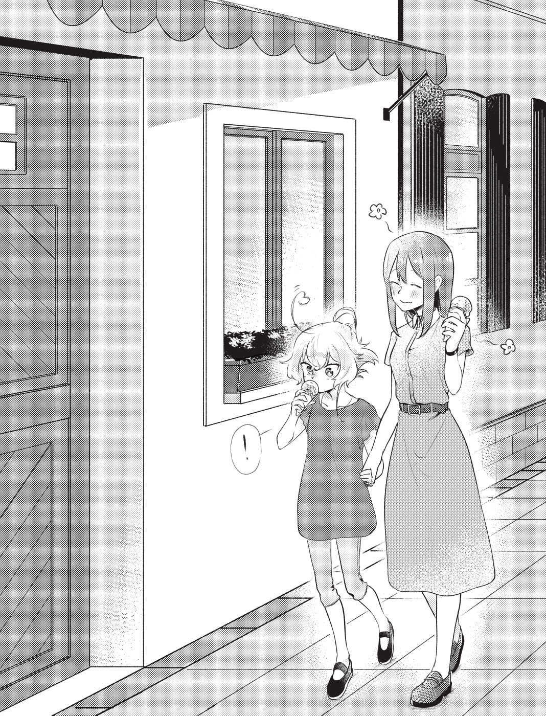 ! 2girls ahoge belt blush closed_eyes closed_mouth collarbone collared_dress denim door dress fingernails flower food full_body greyscale hair_between_eyes hand_up heart heart_ahoge highres holding holding_food holding_hands holding_ice_cream house ice_cream ice_cream_cone long_hair looking_at_food monochrome multiple_girls outdoors pants ponytail shirt shoes short_sleeves sidelocks smile speech_bubble t-shirt tanya_degurechaff viktoriya_ivanovna_serebryakov walking window wristband youjo_senki yuuki_(qgbugtbhbxn5ts9)