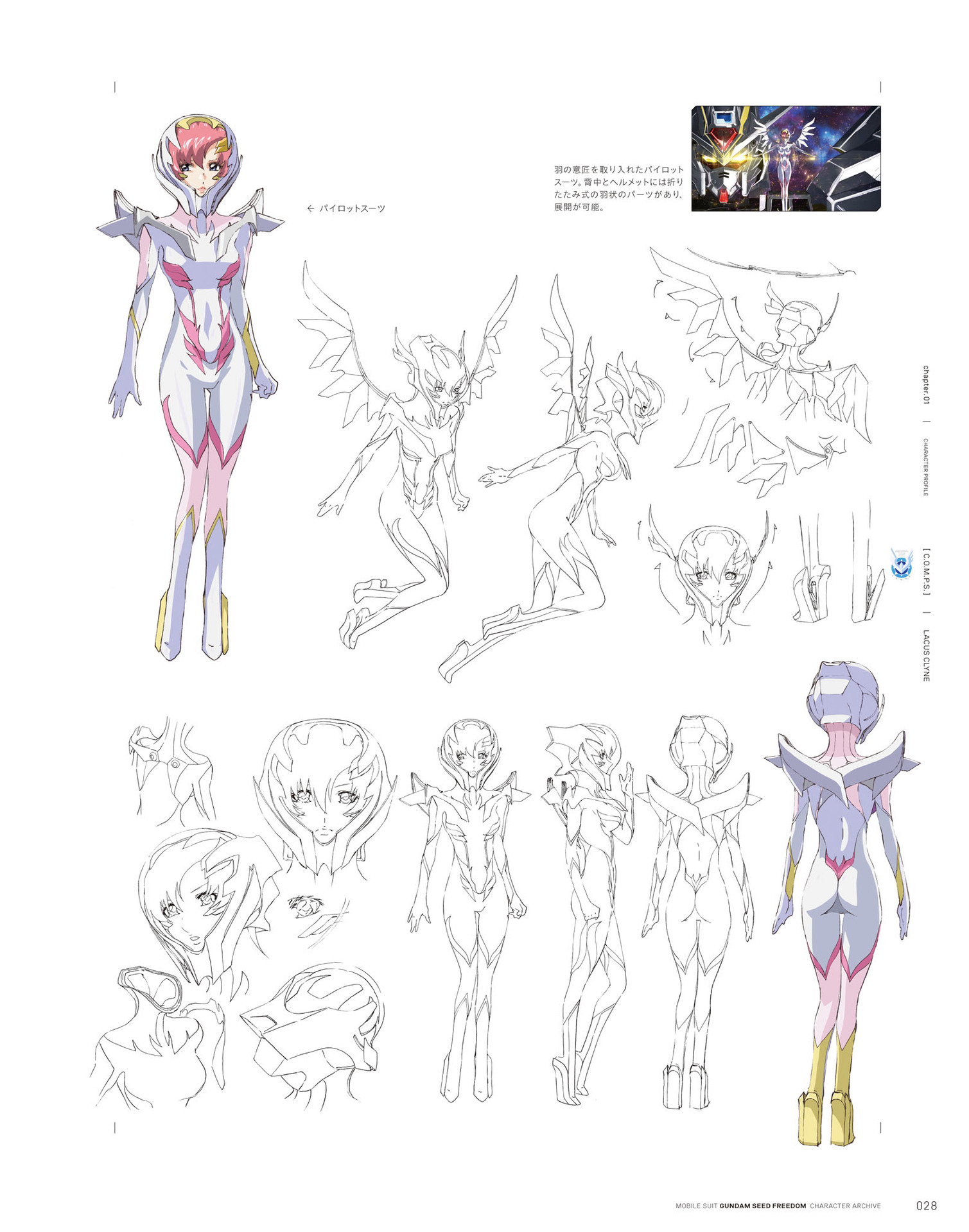 1girl concept_art gundam gundam_seed gundam_seed_freedom highres hirai_hisashi lacus_clyne official_art pink_hair reference_sheet solo