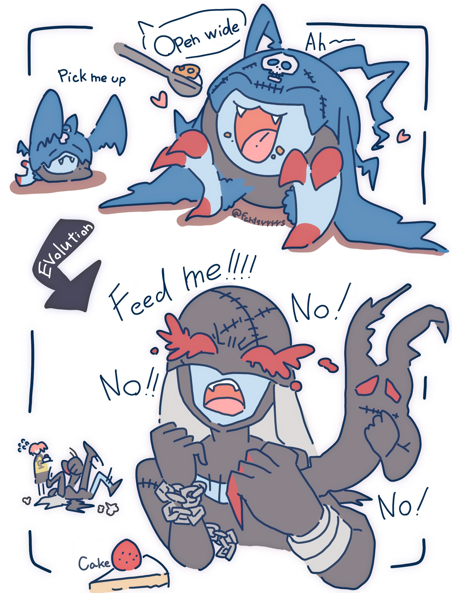 aiba_ami demon demon_girl digimon digimon_(creature) english_text fallen_angel food fruit highres ladydevimon long_hair mask picodevimon skull_print strawberry usamimi_(fantasyyyyys)