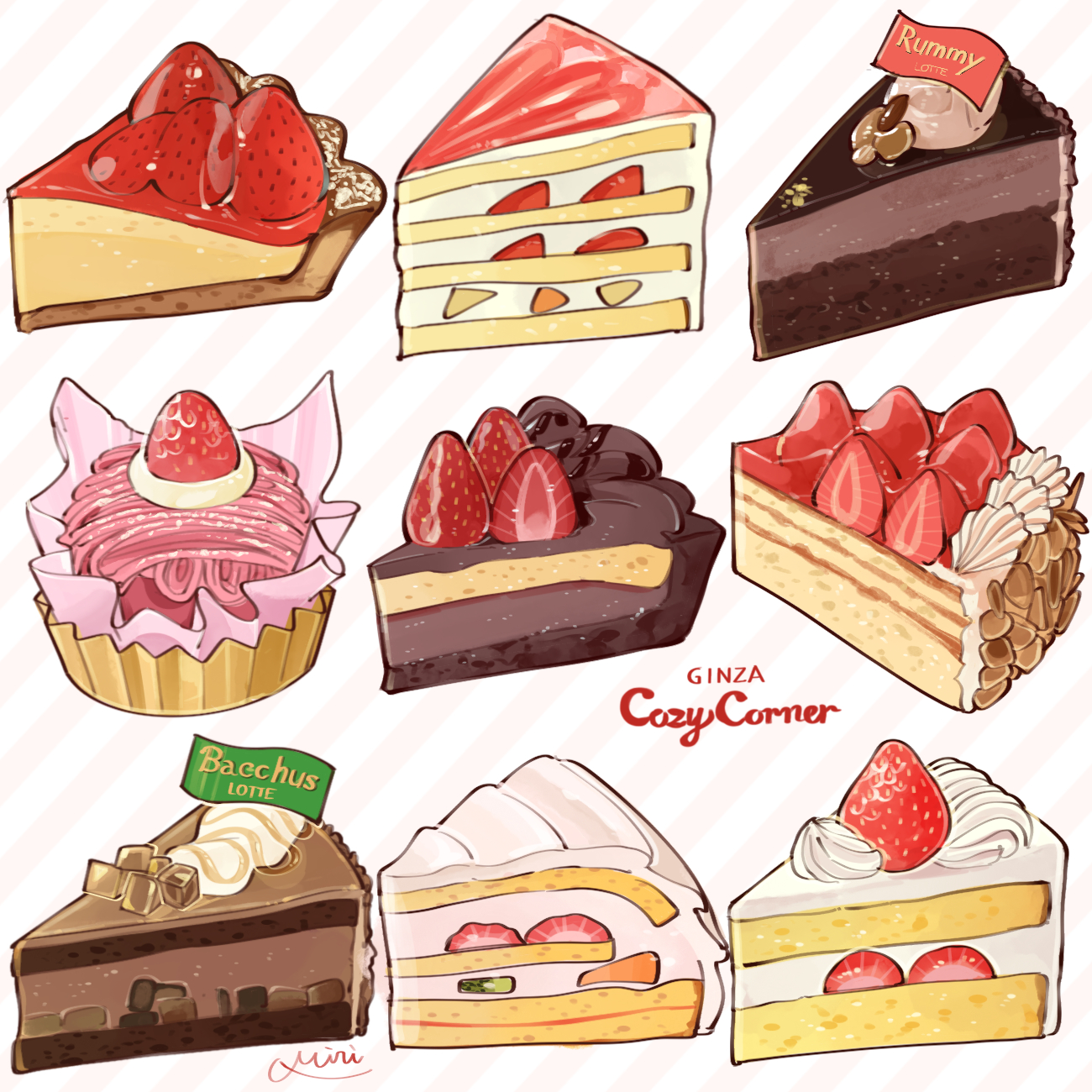cake cake_slice chocolate_cake chocolate_icing cream cupcake dessert food food_focus fruit highres icing miri_illust no_humans nut_(food) original strawberry