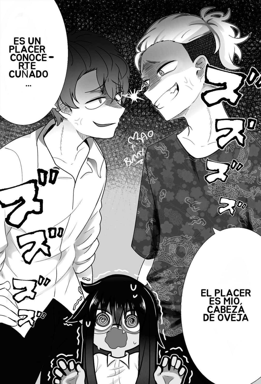 brother_and_sister bullying eyes_visible_through_hair glasses hachiouji_naoto highres ijiranaide_nagatoro-san looking_at_viewer mao_bunny nagatoro_hayase nagatoro_ichirou personality_switch role_reversal scared school_uniform translation_request