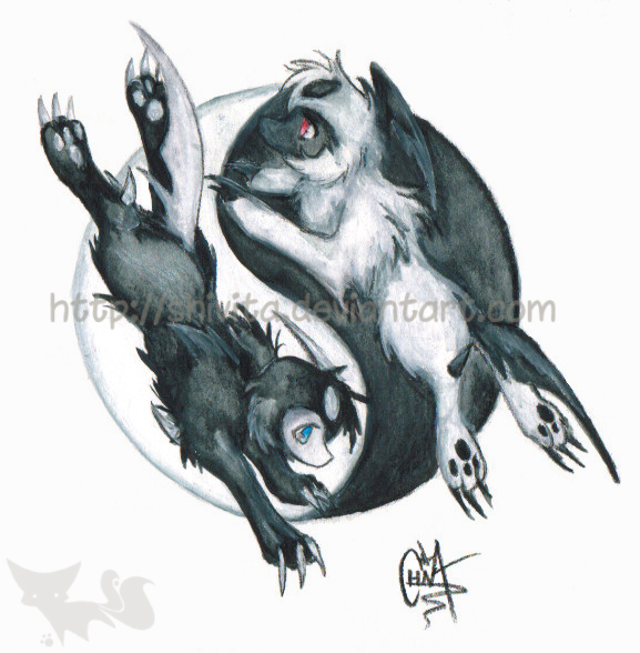 absol alternate_color black_hair blue_eyes claws deviantart_username gen_3_pokemon horns nintendo no_humans pawpads pokemon pokemon_(creature) red_eyes shivita single_horn white_hair yin_yang