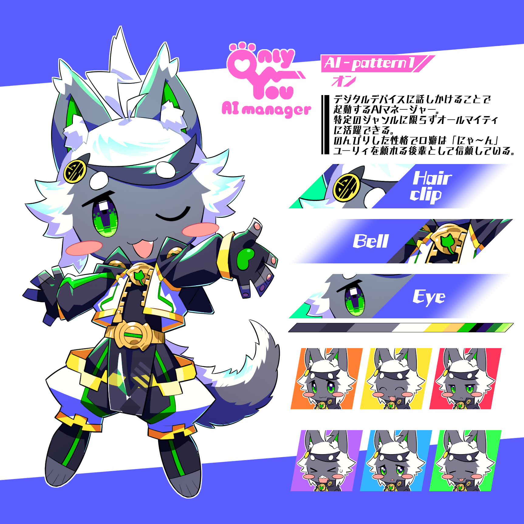 1boy animal_ear_fluff animal_ears baggy_pants blush_stickers cat_boy cat_ears cat_tail colored_skin commentary_request cropped_jacket english_text fang fingerless_gloves full_body furry furry_male gloves green_eyes grey_skin highres jacket long_sleeves looking_at_viewer mixed-language_text multiple_views one_eye_closed open_mouth original pants pelvic_curtain purple_background saadiya74 short_hair simple_background tail translation_request white_background white_hair white_jacket