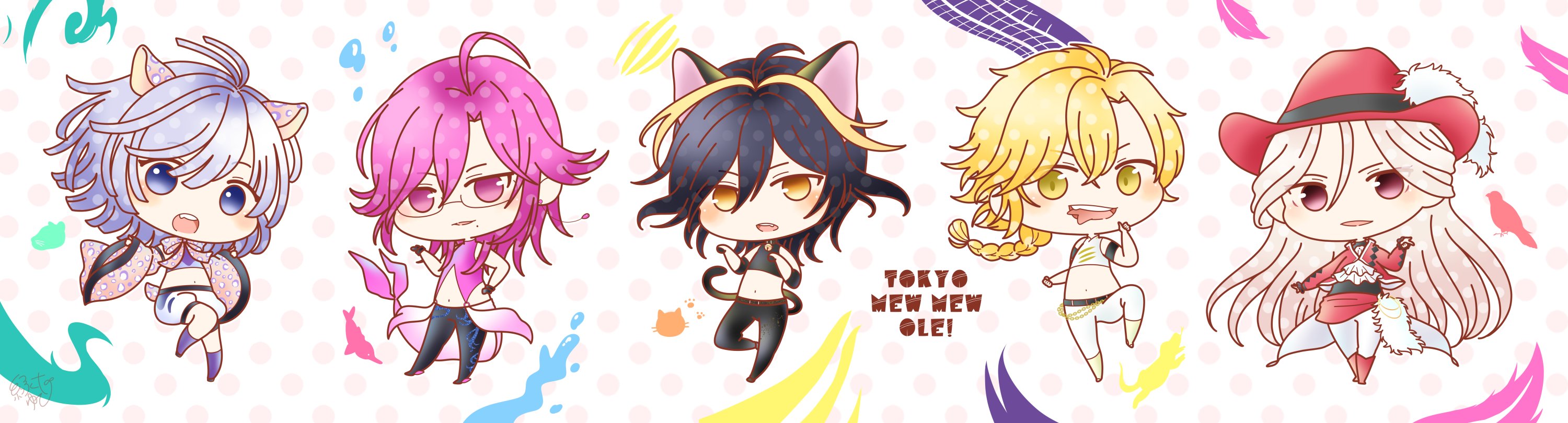 5boys animal_ears cat_boy cat_ears cat_tail cetacean_tail chibi chibi_only commentary_request copyright_name fins fish_tail highres hiroo_taichi kanda_ryusei leopard_ears male_focus midorigiyubi multiple_boys pink_hair roppongi_ayato shibuya_aoi_(tokyo_mew_mew) tail tokyo_mew_mew tokyo_mew_mew_ole! trap yoyogi_shizuka