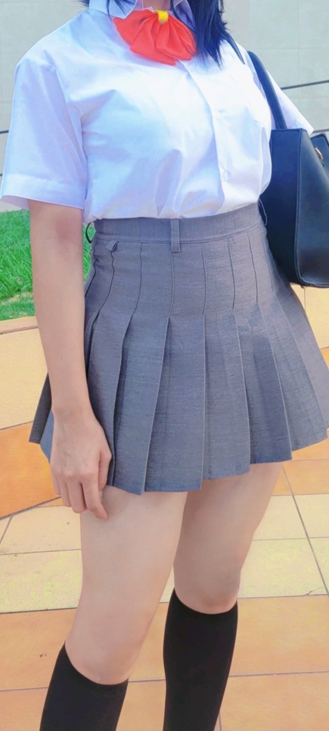 1girl black_hair bleach cosplay gabswakeman highres kuchiki_rukia medium_hair miniskirt real_life school_uniform short_hair skirt solo