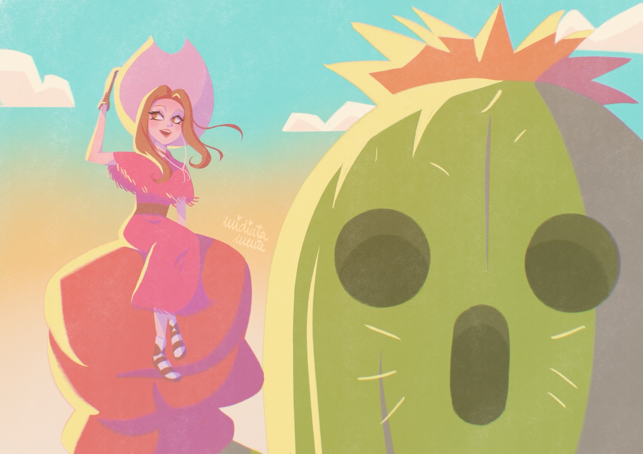 boxing_gloves brown_eyes brown_hair cactus digimon digimon_(creature) digimon_adventure highres long_hair midiatamente plant spines tachikawa_mimi togemon
