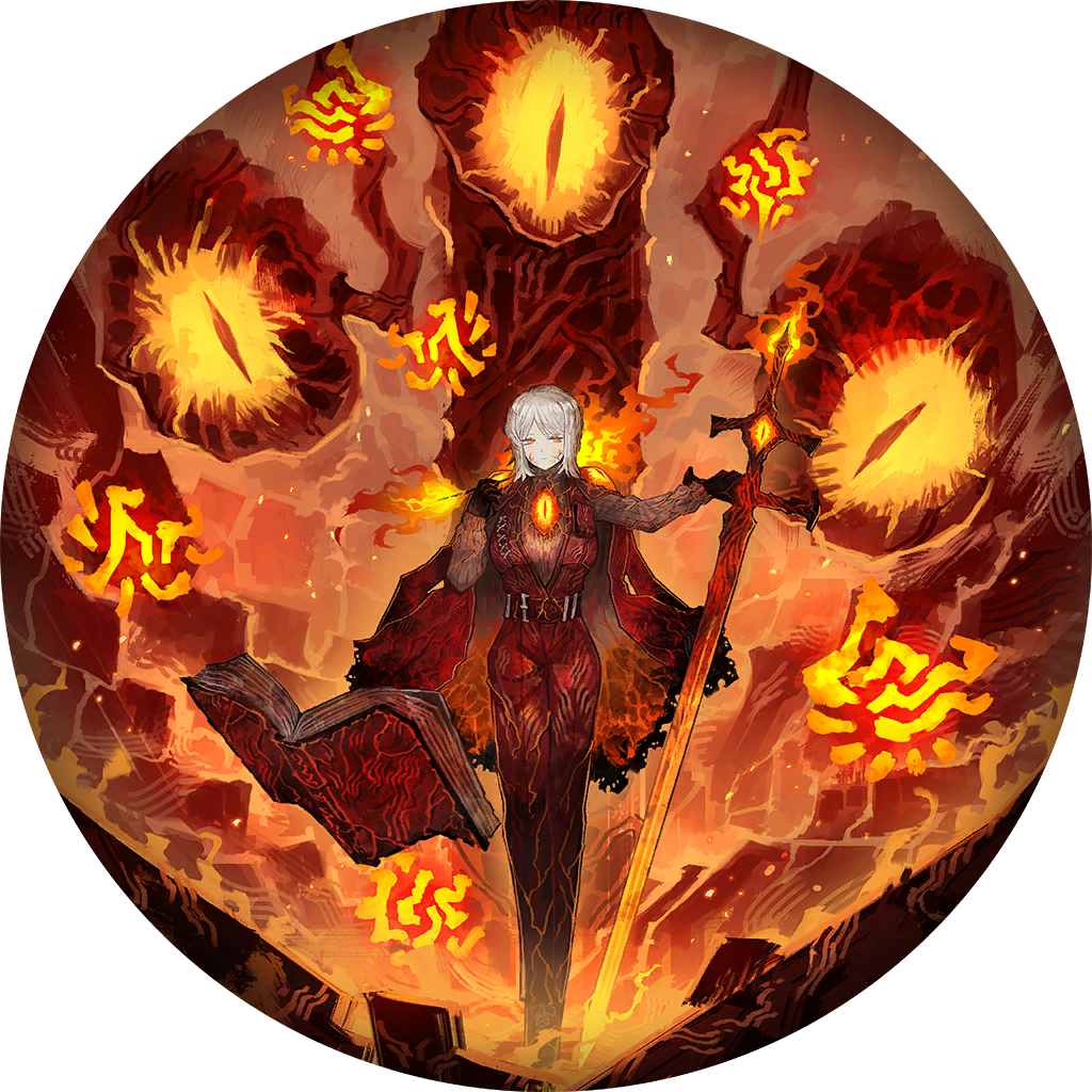 9:2_(e.g.o) belt black_gloves book burnt_clothes e.g.o_(project_moon) faust_(project_moon) fire game_cg gloves limbus_company medium_hair nai_ga official_art orange_eyes pants project_moon red_pants red_vest skin_prophet solo_focus sweater sword turtleneck turtleneck_sweater vest weapon white_hair zweihander