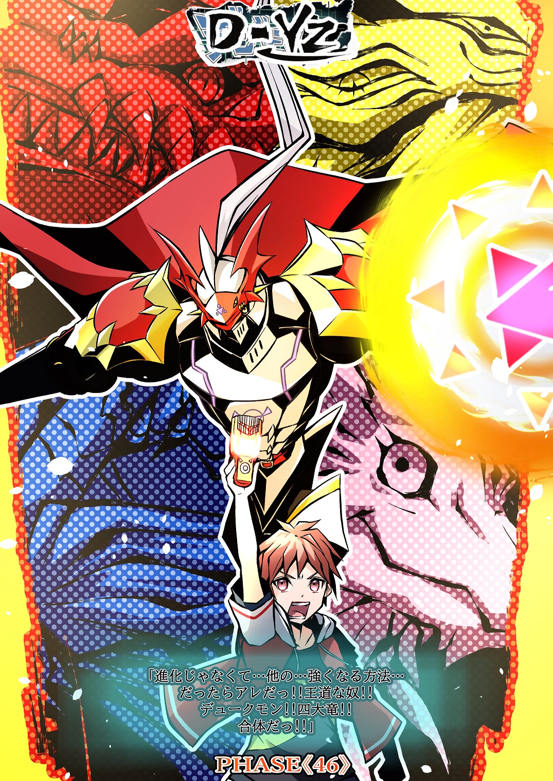 armor digimon digimon_(creature) digital_hazard four_great_dragons full_armor goddramon highres holydramon megidramon open_mouth qinglongmon shield translation_request