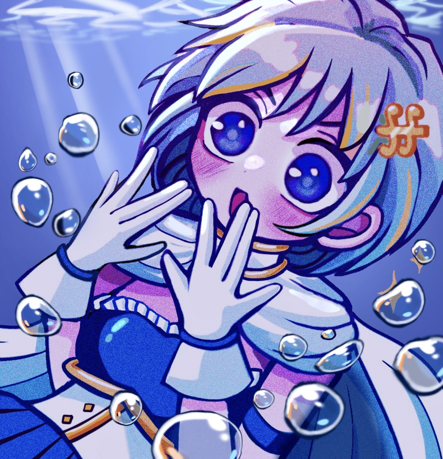 1girl blue_eyes blue_hair cape detached_sleeves gloves keropiki looking_at_viewer mahou_shoujo_madoka_magica miki_sayaka miki_sayaka_(magical_girl) open_mouth short_hair solo white_gloves