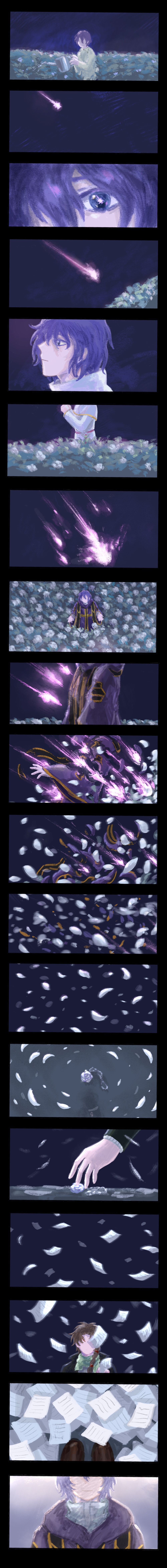 2boys absurdres belt black_jacket blue_eyes blue_hair braid brown_hair capelet cengfanren chinese_commentary closed_mouth coat collared_shirt colored_eyelashes commentary_request faceless flower gold_trim green_scarf green_shirt harada_minoru highres holding holding_watering_can hood hood_down hooded_coat jacket long_image long_sleeves male_focus multiple_boys night open_clothes open_jacket outdoors petals purple_coat red_belt rose saibou_shinkyoku scar scar_on_face scar_on_forehead scarf shirt shooting_star short_hair side_braid single_braid sky stole tall_image too_many_papers utsugi_noriyuki watering_can white_capelet white_flower white_petals white_rose white_shirt wide_sleeves