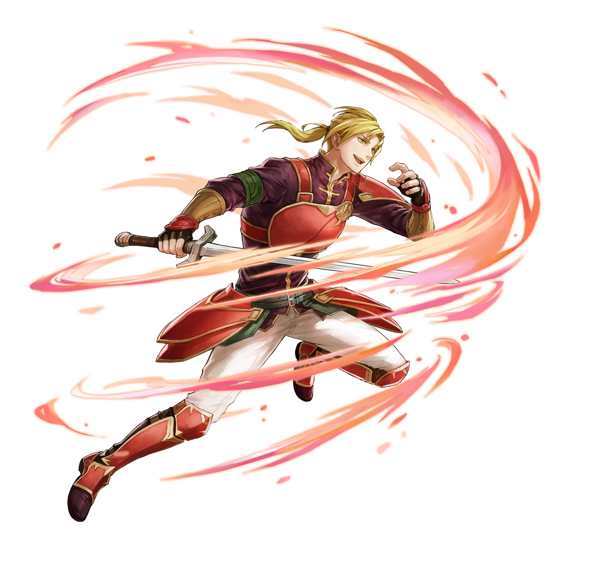 1boy arm_up armor blonde_hair fingerless_gloves fire_emblem fire_emblem:_the_sacred_stones fire_emblem_heroes forde_(fire_emblem) full_body gloves holding holding_sword holding_weapon nintendo official_art pants pauldrons ponytail red_armor red_footwear short_hair shoulder_armor single_pauldron sword uroko_(mnr) weapon white_pants